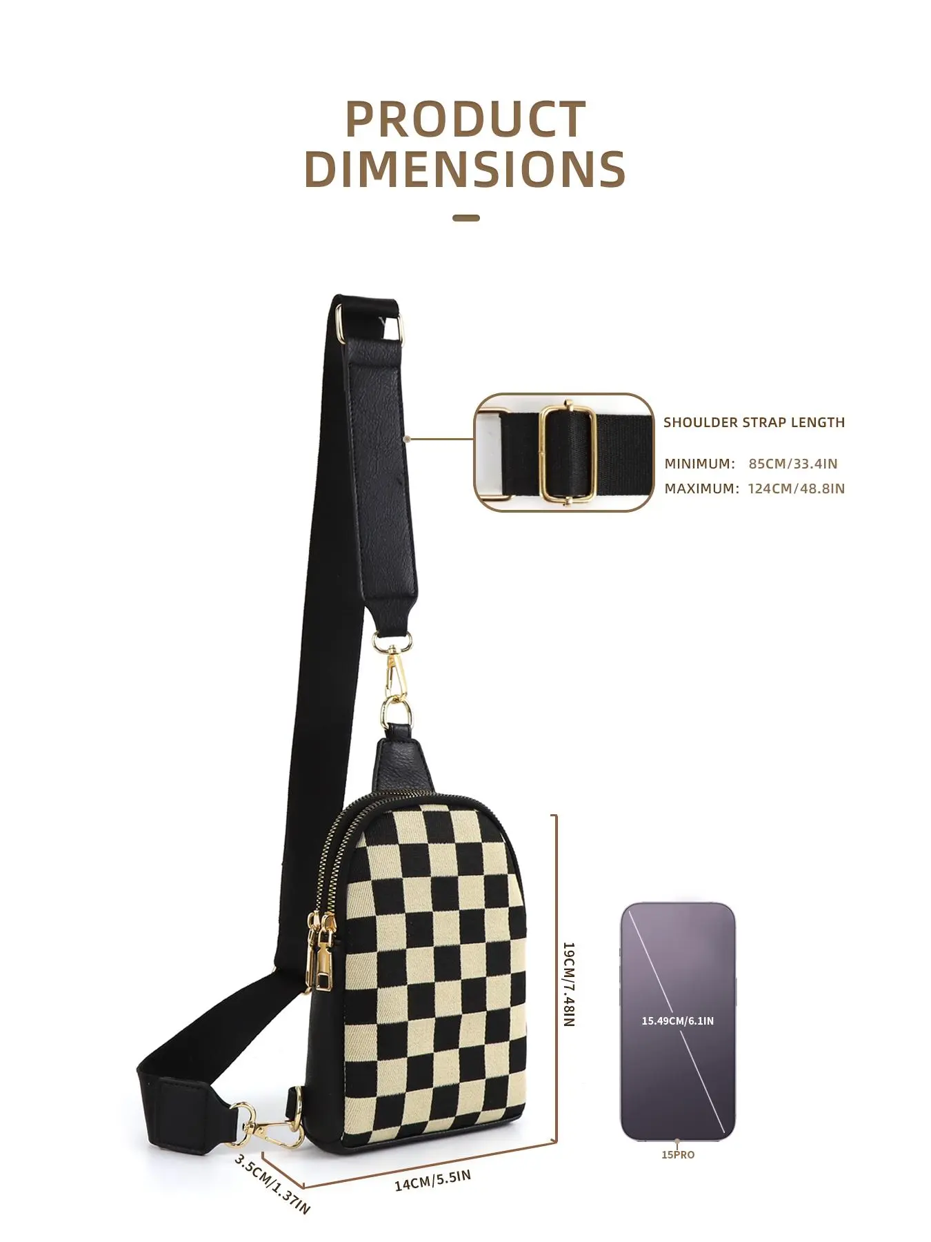 Characteristics: I love the checkerboard pattern, the strap is made very well, it's adjustable.