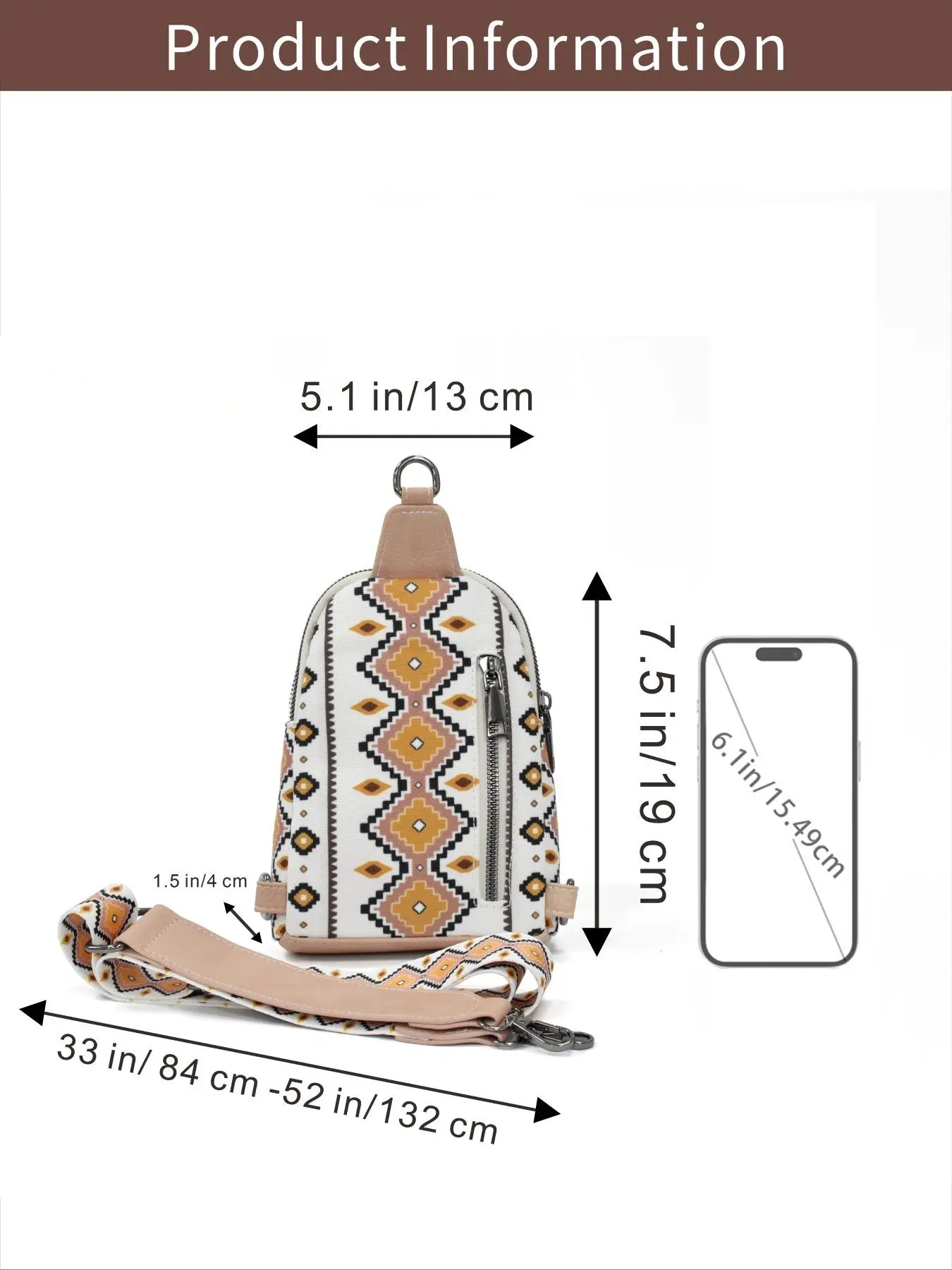 Cute and compact! Fits a small wallet and my phone. Love the adjustable strap. I recieved many compliments!