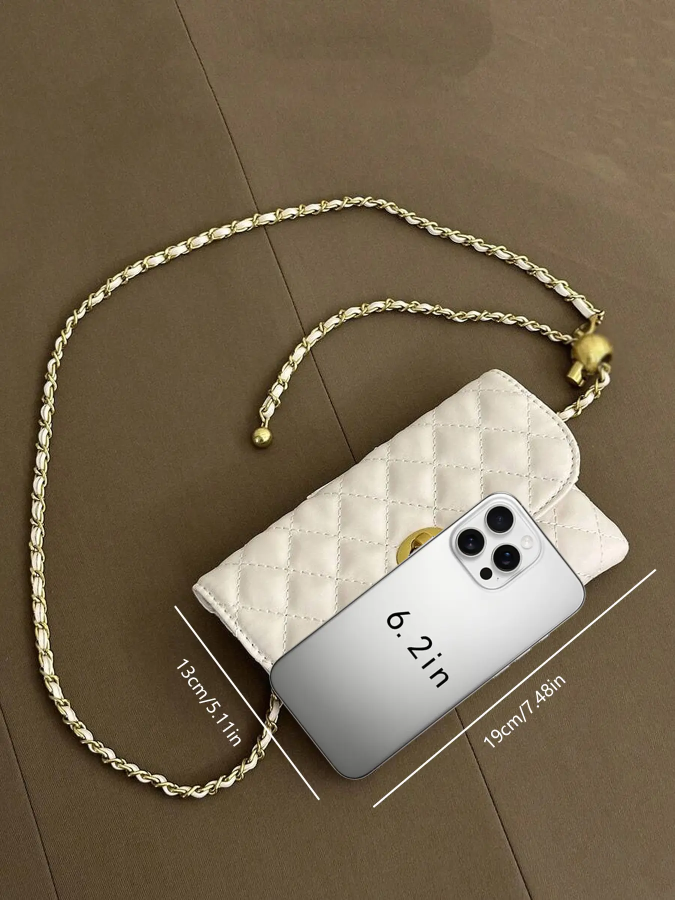 This is a nice purse. Cute, small enough for ur phone n cash n ID. Super cute. Although the chain can be longer.