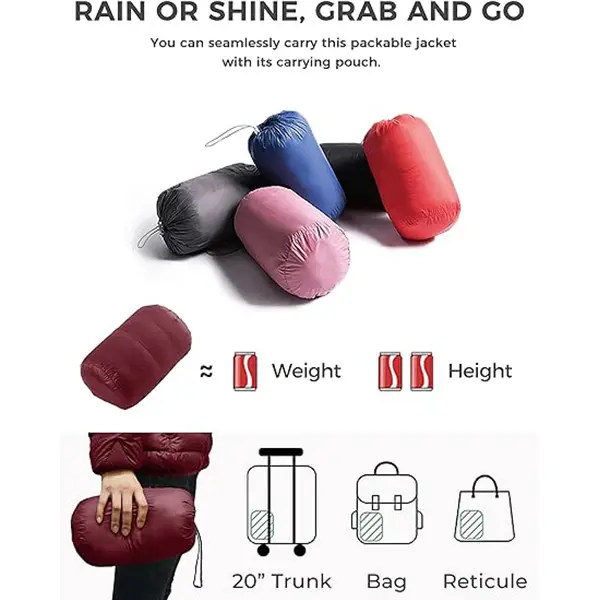 ·Travel in Style - Made of 20D 400T nylon, our stylish, compressible, and lightweight puffer jackets are ideal for on-the-go use with the packable down jacket's carrying pouch - perfect for bringing on travels and commutes.