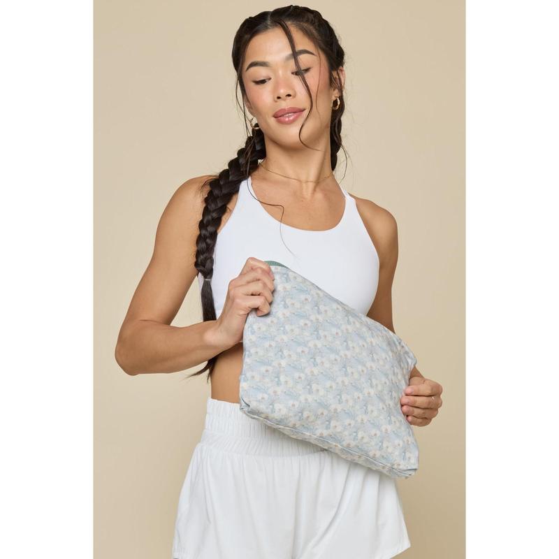 I got this for a trip and it’s so comfy! I love the floral design in the hoodie and it fits perfectly into its pillow. I got the green and it’s gorgeous in person. I’m normally a small and got the S/M. It’s got a loose fit to it, but fits just fine. I had to cinch the waist so it didn’t look too bulky. It also fits nicely into a suitcase.