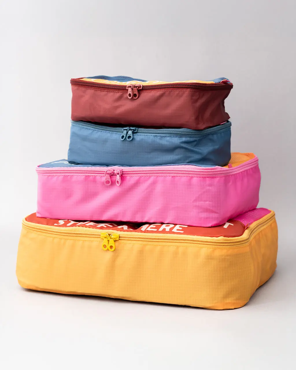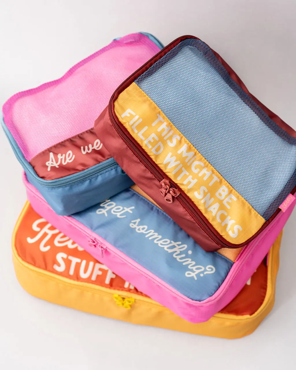 Love these packing cubes! The pack comes with 2 different sizes. The phrases are so cute too!
