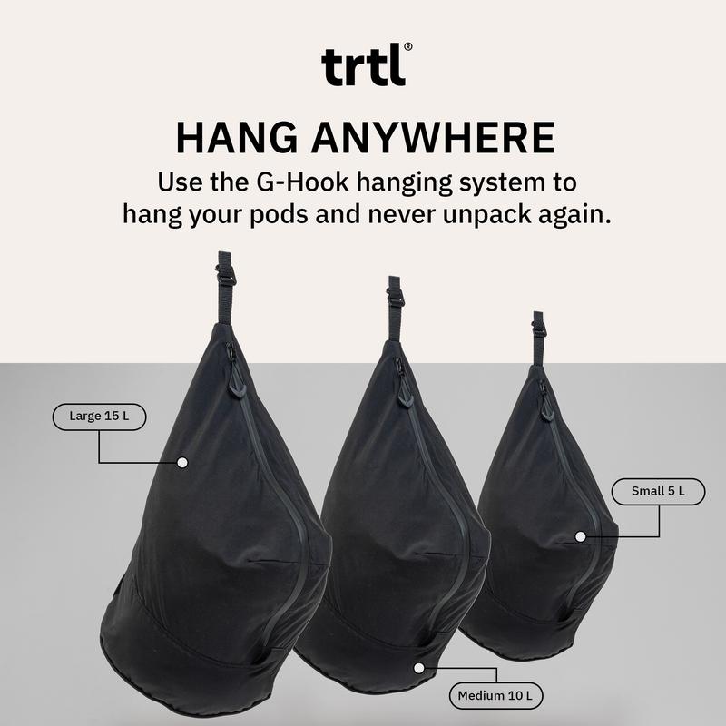 The Trtl Packing Pods revolutionize travel with a G-Hook hanging system that allows you to hang them anywhere, eliminating the need to unpack.
