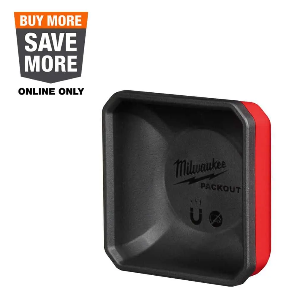 This magnetic bin is versatile for hanging or storing. It fits inside low-profile organizers (48-22-8431 & 48-22-8436). The bin includes a quick-access magnetic dish for organizing small items like fasteners and power tool accessories. Its non-marring magnetic base ensures safe placement on metal surfaces.