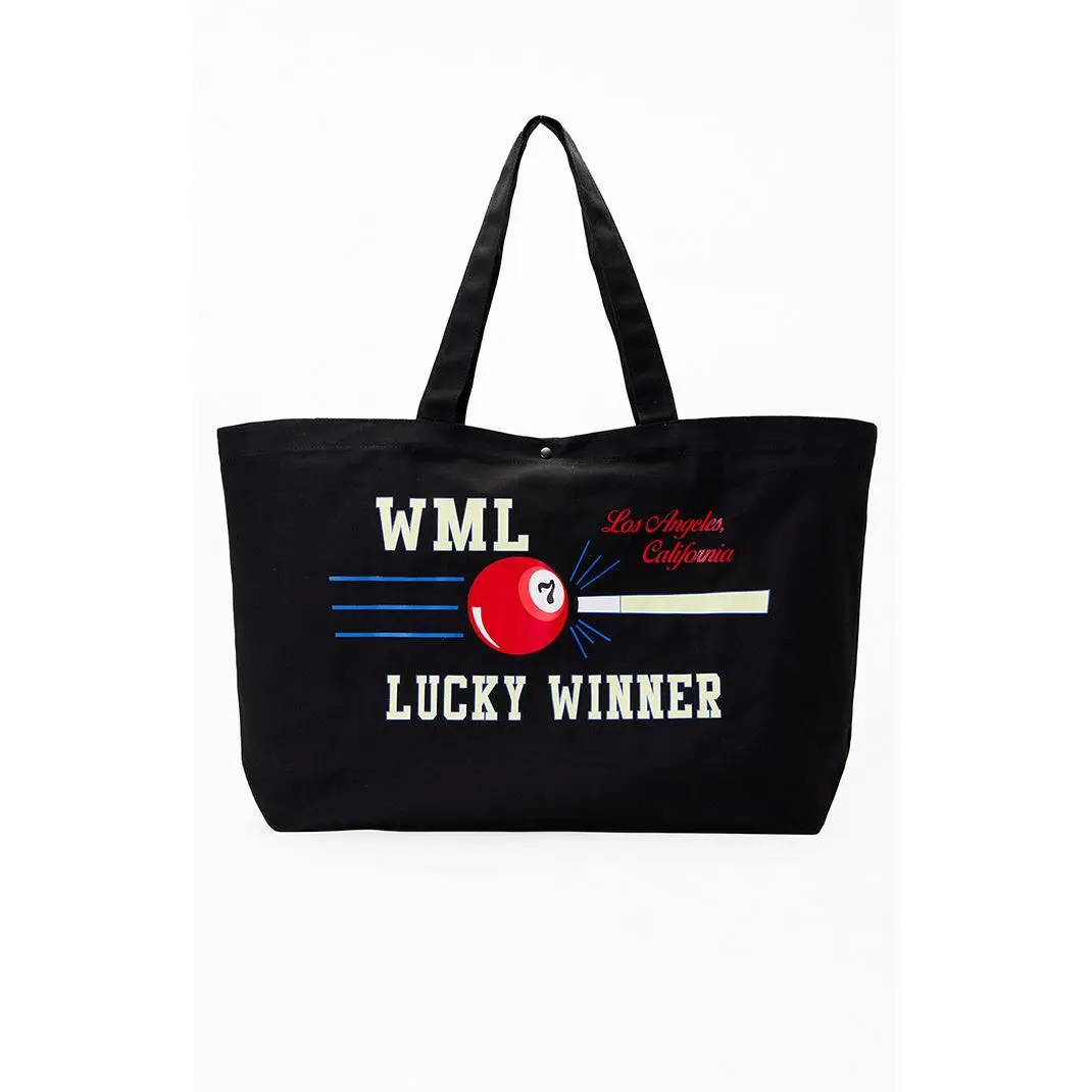 Pacsun Exclusive! Carry your essentials in winning style with the Lucky Winner Tote Bag from Wish Me Luck. Made from durable canvas, it features fixed shoulder straps, a roomy main compartment, and bold Wish Me Luck graphics for a cool, everyday look.