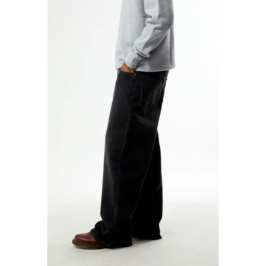 5. Pacsun Men's Blake Extreme Baggy Jeans Plaid Washed Dark Gray