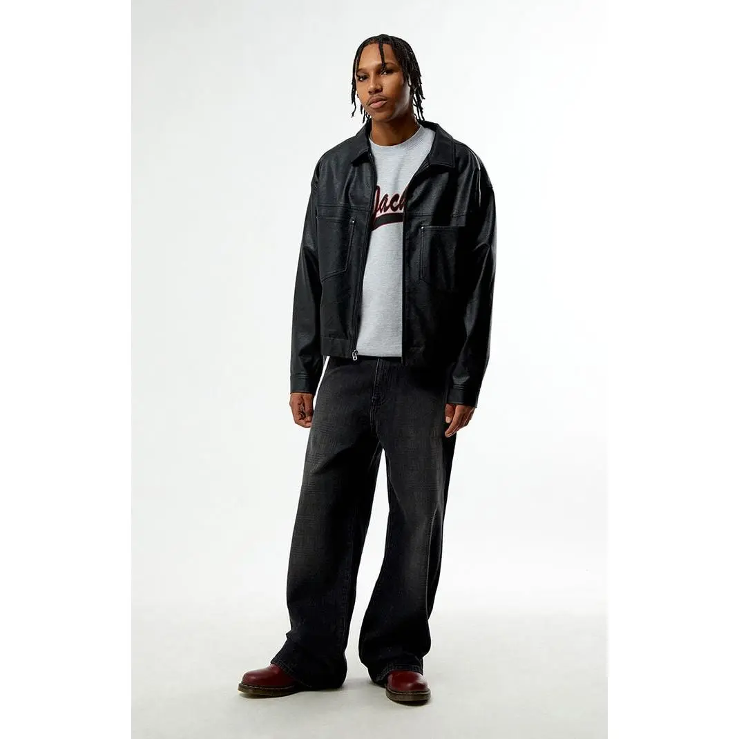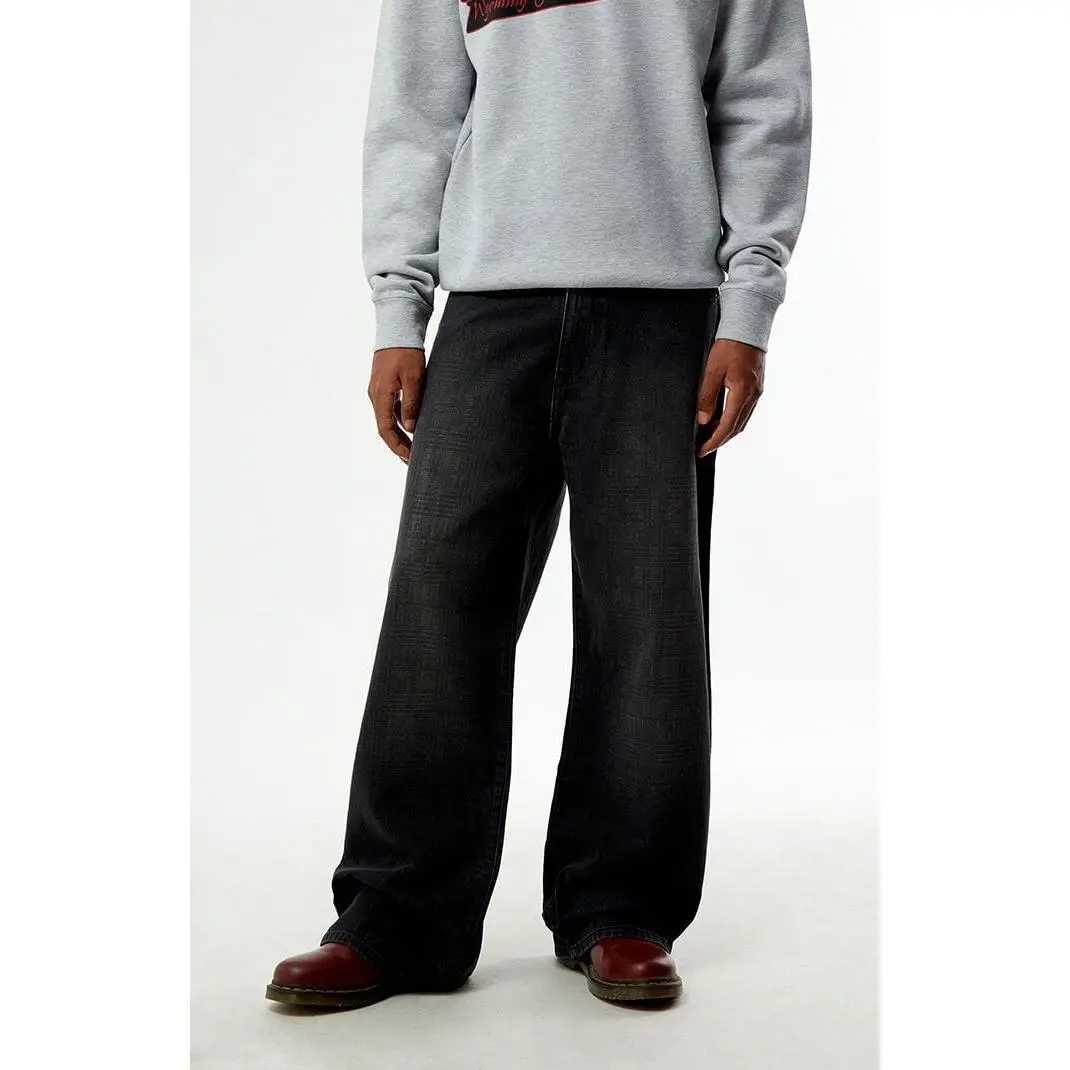 Pacsun Men's Blake Extreme Baggy Jeans Plaid Washed Dark Gray