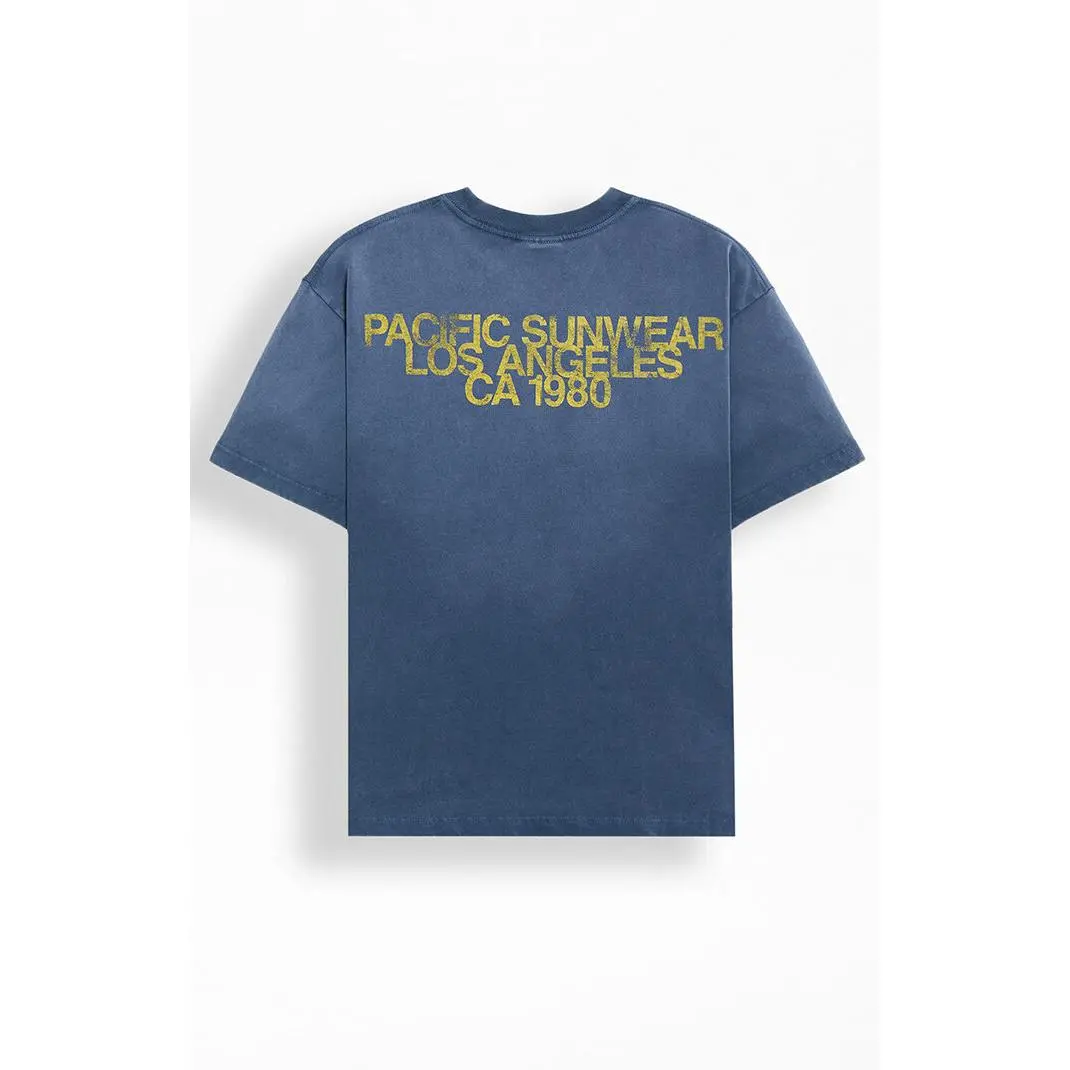 Upgrade your streetwear with the Navy Faded T-Shirt from Pacsun. Featuring a washed fabrication for a faded look, it features a classic crew neckline, short sleeves, and front and back graphics, making it the perfect tee for a worn-in look.