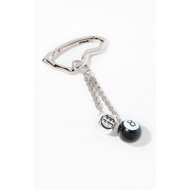The 8 Ball Keychain from Pacsun adds fun flair to your everyday essentials. Featuring a silver clip with an 8 ball and silver dice, it’s a stylish way to personalize your bag or keys.