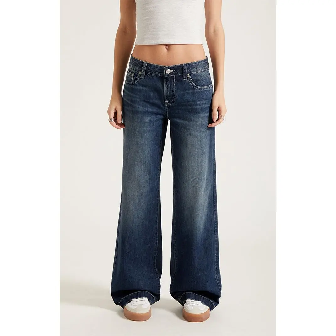 Pacsun Women's Casey Low Rise Baggy Jeans Contrast Stitch Dark Blue
