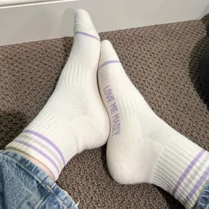 The Love Me Varsity Stripe Quarter Socks from Pacsun bring sporty, playful vibes to your sock game. These quarter-length socks feature soft ribbed fabric, a varsity stripe at the ankle, and a “Love Me Madly” jacquard graphic on the footbed.