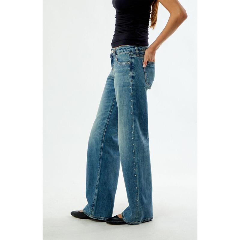 Pacsun Women's Zoe Low Rise Girlfriend Jeans Rhinestone Stud Light Blue