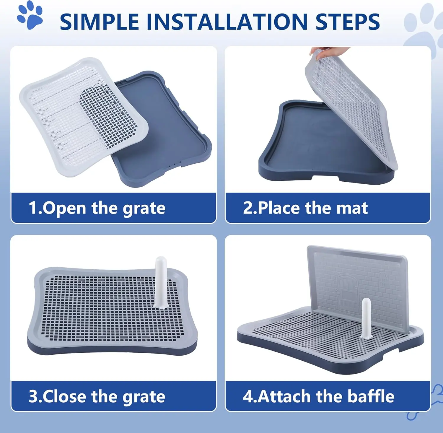 HalloStark Pee Pad Holder is ideal for puppies and small-sized dogs. It includes a pee wall for easy cleaning. This holder offers a convenient solution for pet owners, suitable for indoor use. The non-skid feet ensure it stays in place, providing stability for various indoor settings like bathrooms, dog cages, or enclosures. 🛠️