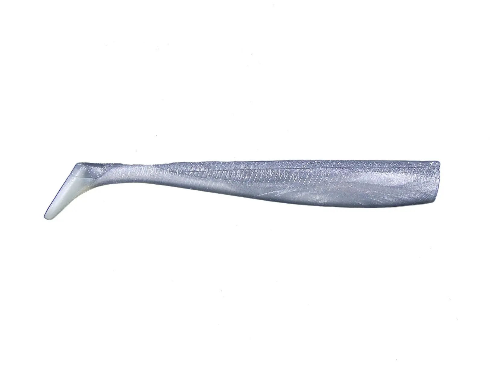 · a thicker profile 8" paddle tail swimbait with very little body roll.