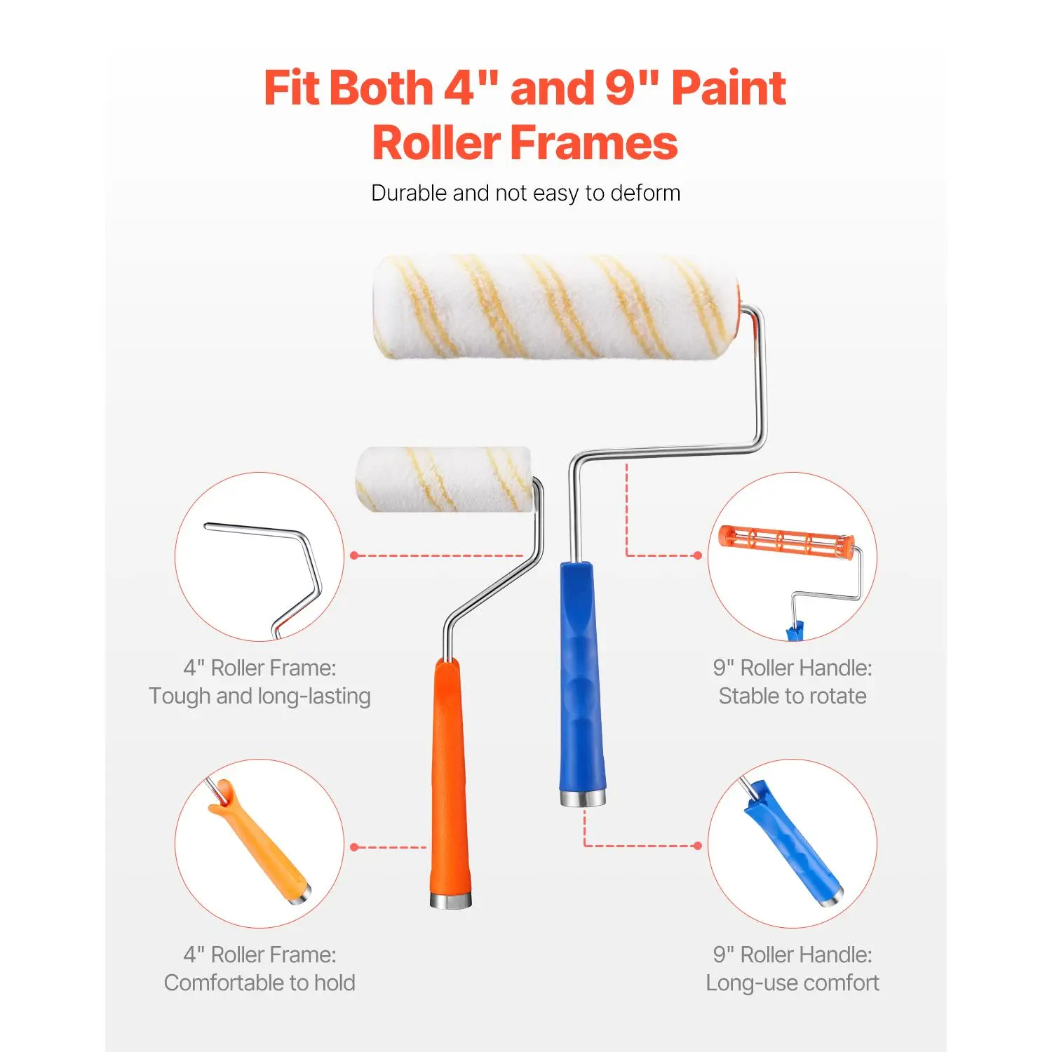 ·Solid Roller Frames: Our paint roller set's 4" and 9" roller frames are made from high-strength materials for reliable support and steady rotation. Their robust design resists deformation and keeps paint rollers stable and spinning smoothly, making them great for demanding painting tasks.