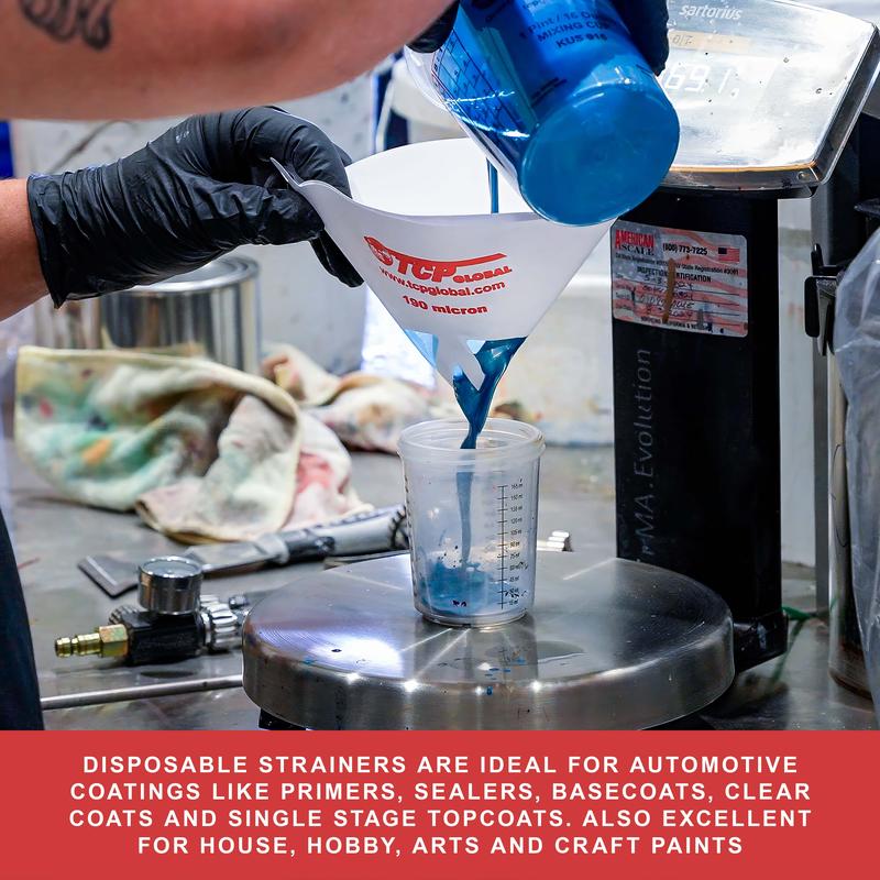· Disposable strainers are ideal for automotive coatings like primers, sealers, basecoats, clear coats and single stage topcoats. Also excellent for house, hobby, arts and craft paints.