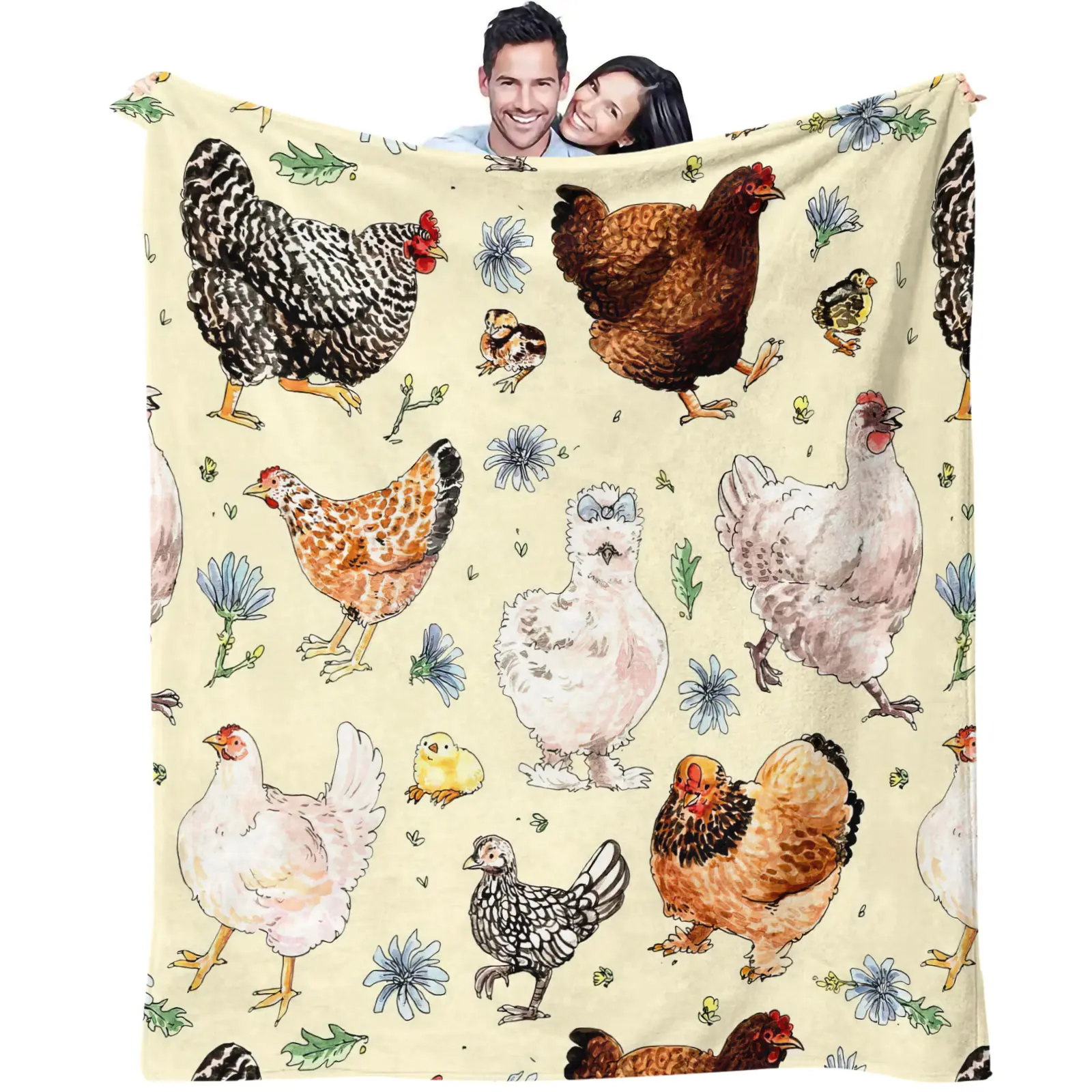 Painted Chicken Pattern Blanket, Suitable for All Seasons, Suitable for Beds, Sofas, Cars, Room Decorations, and Gifts, Suitable for Children and Adults, Decorative Giftable Blankets