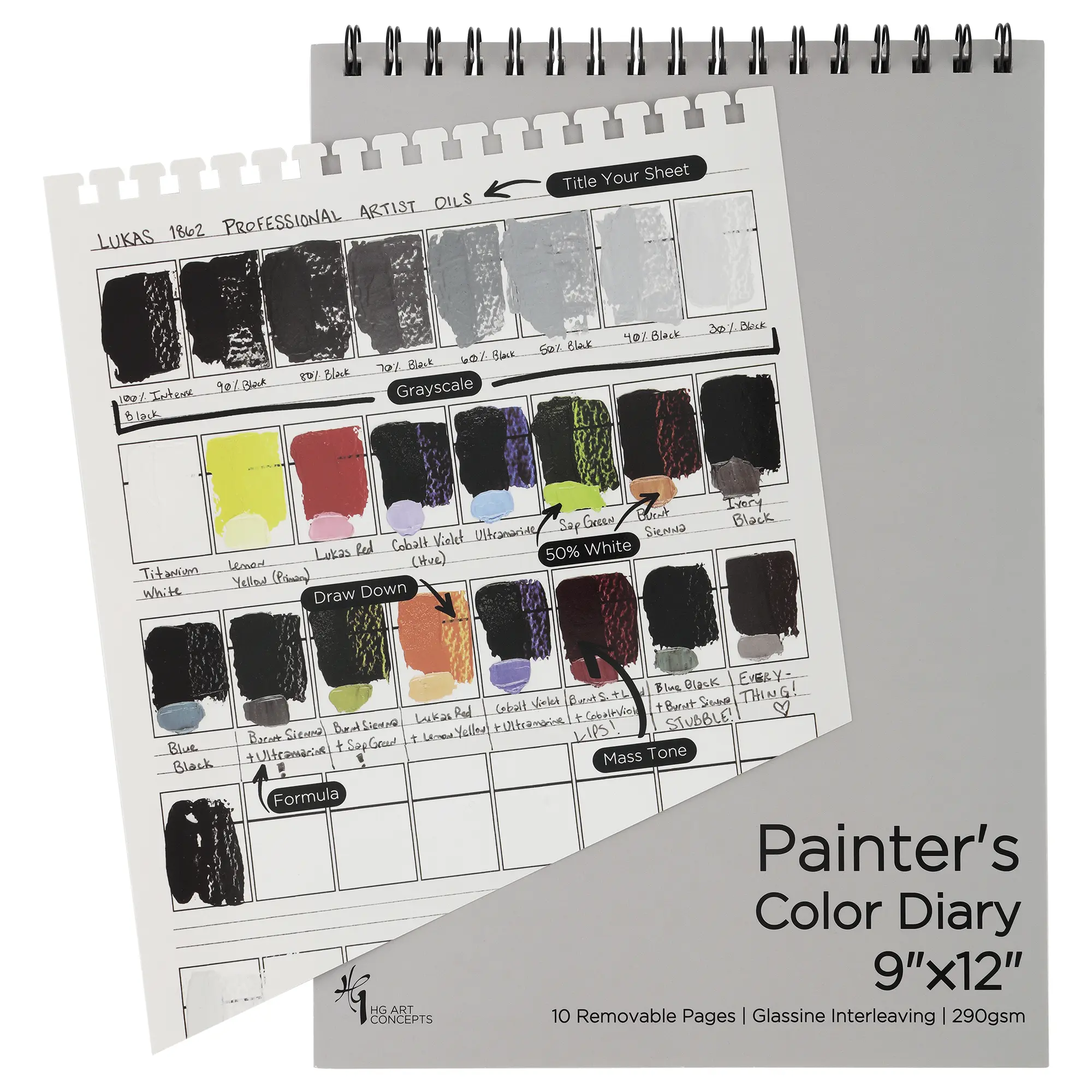 5. HG Art Concepts Painters Color Diary - 9x12" Spiral-Bound Acid-Free Color Swatch Book with 10 Pages for Acrylic or Oil Paint - Single
