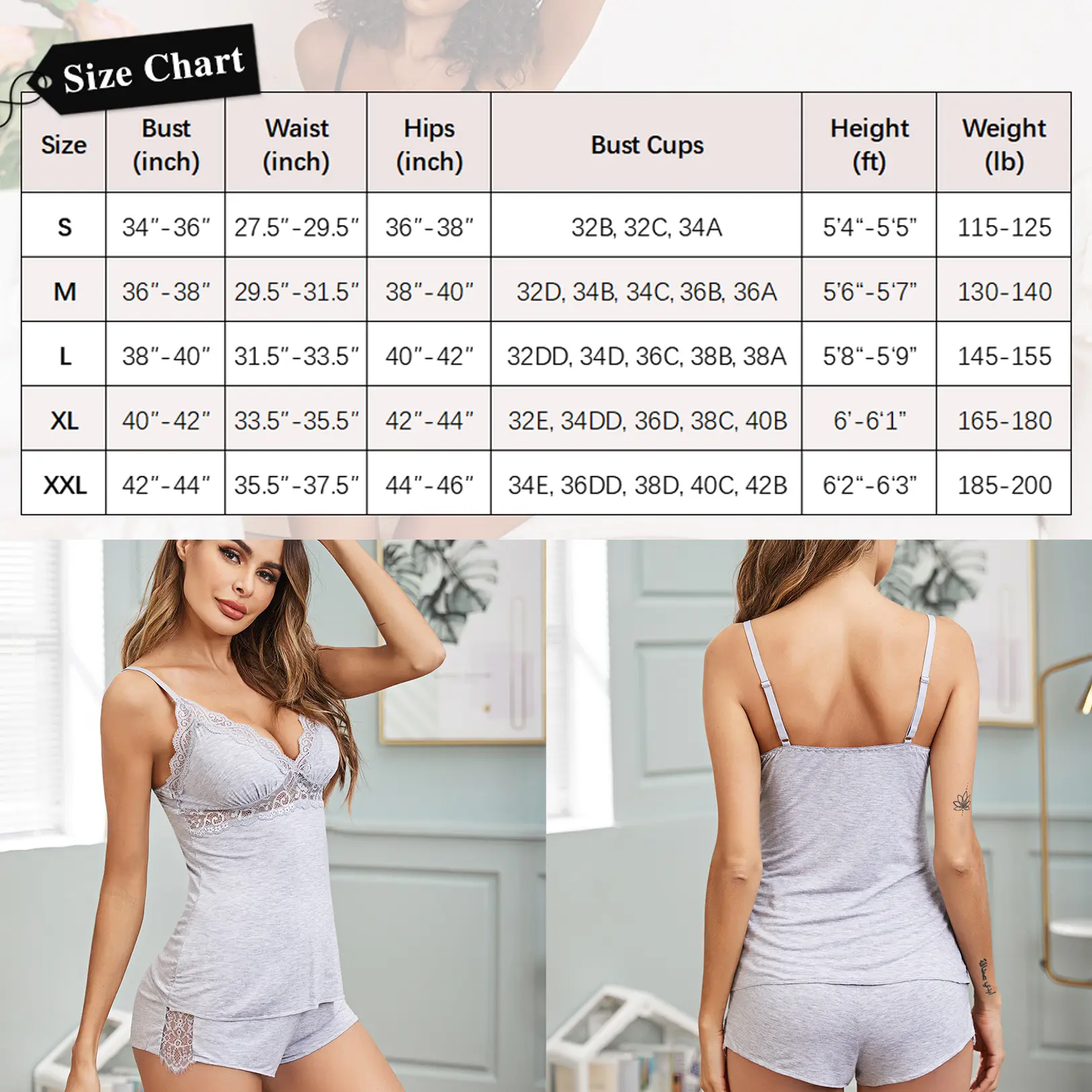 ·Package Content: 1 x women pajamas set, two piece pajama sets with cami and shorts. Our size are standard US size, please choose your general sleepwear size.