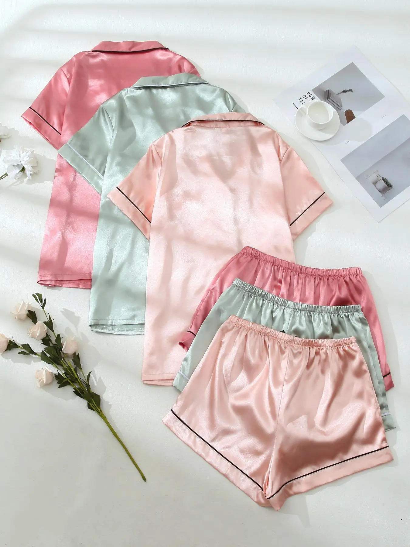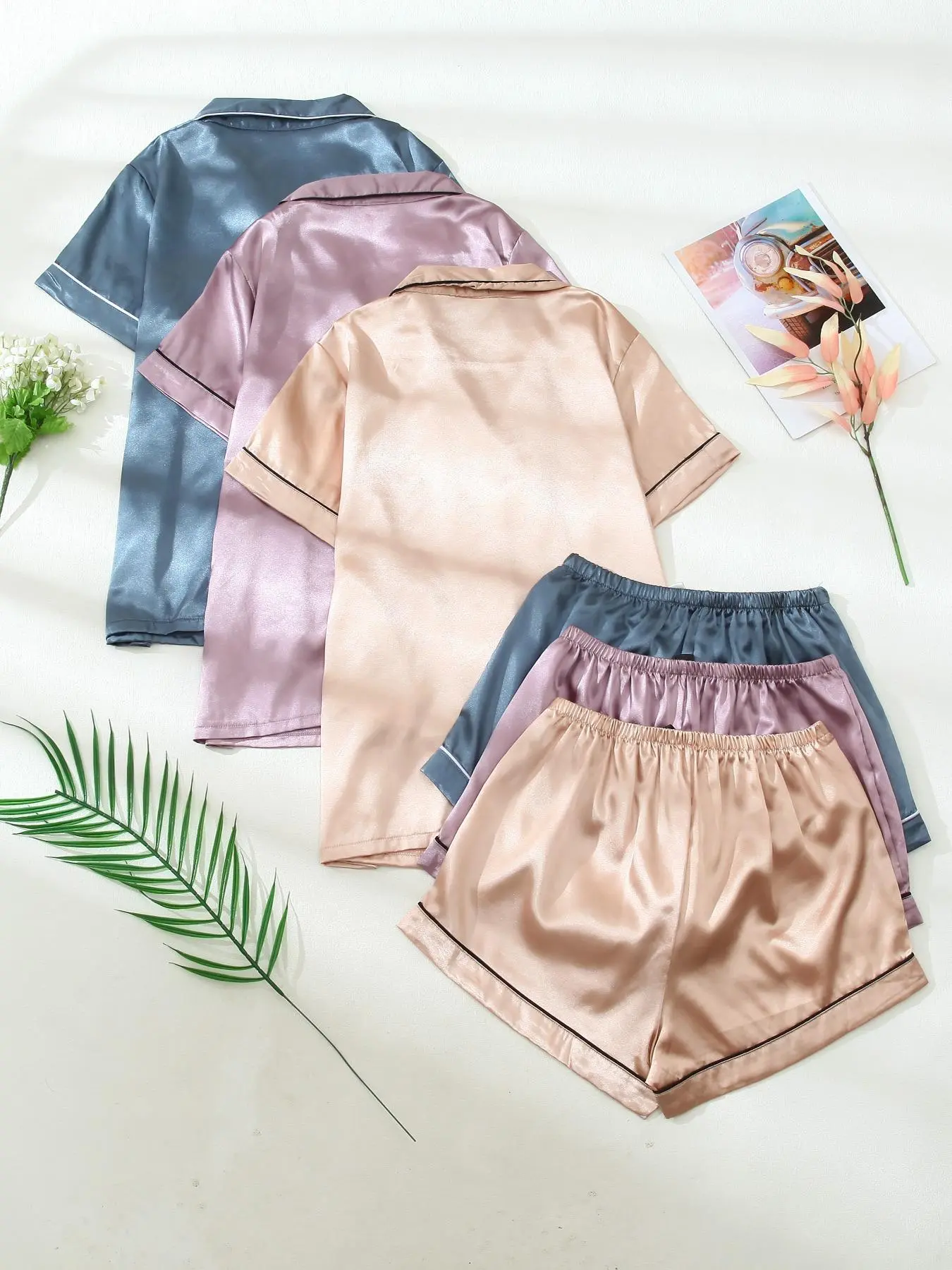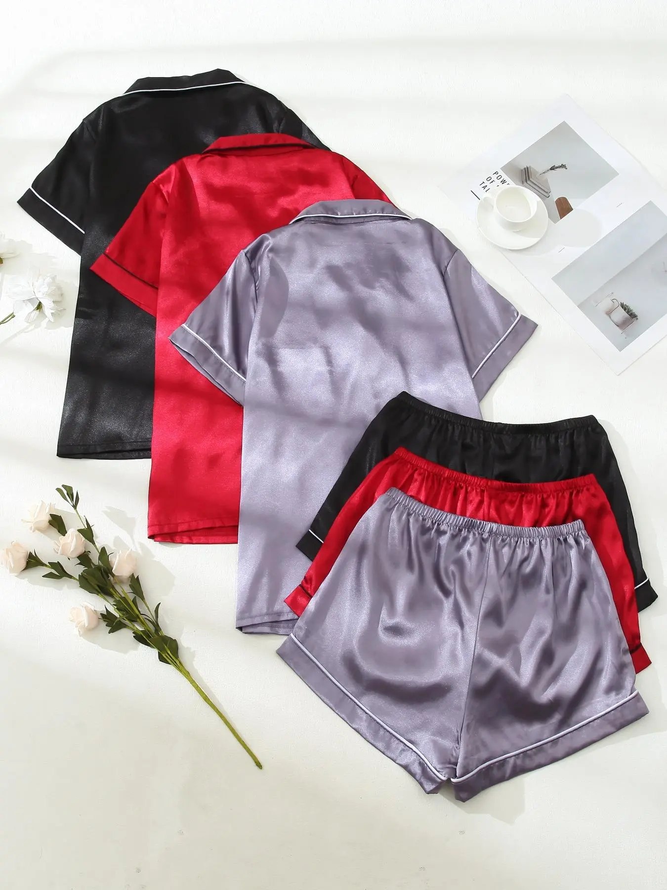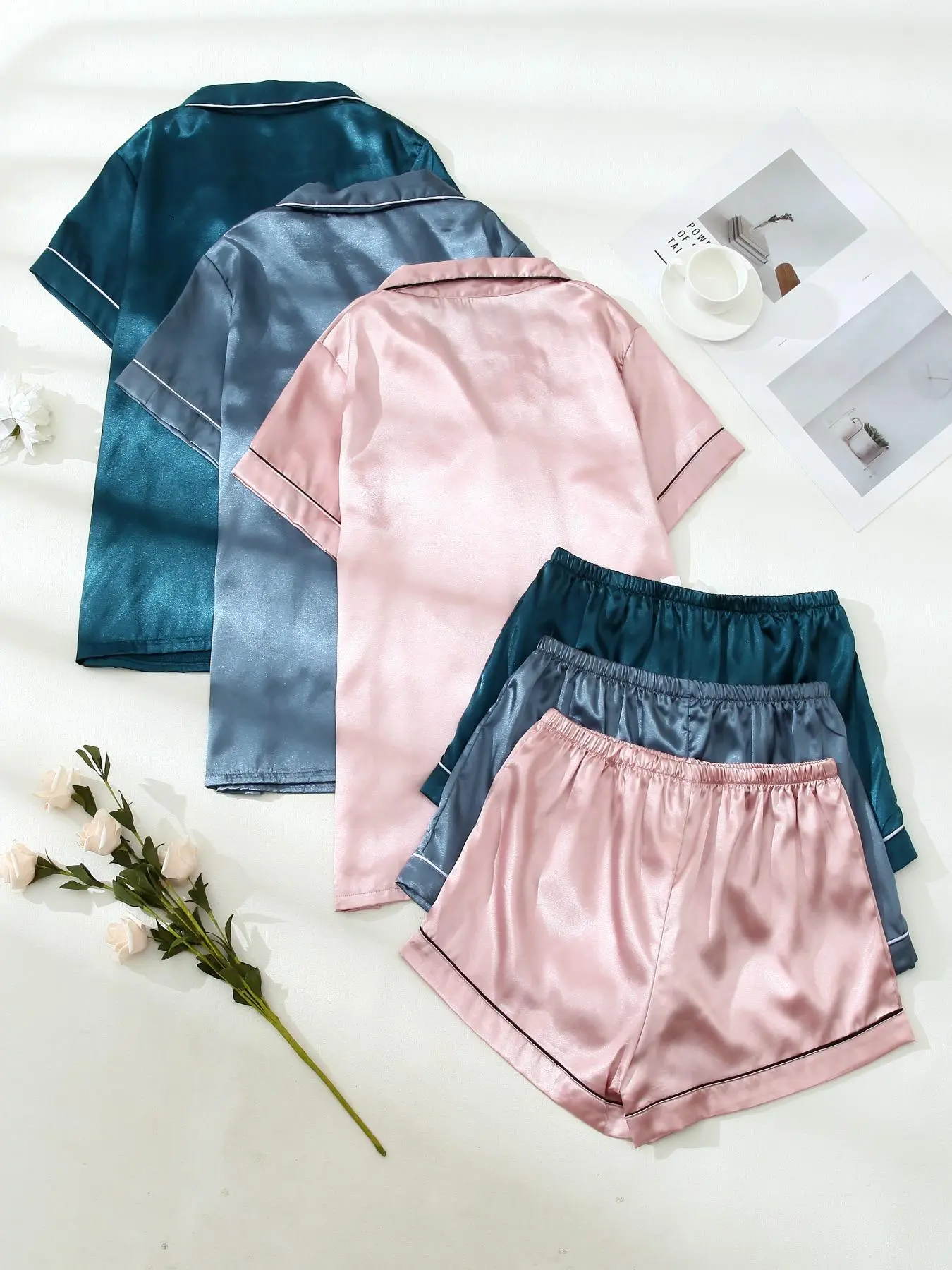 I love satin/silk pjs so these were perfect and really affordable for 3 I love that they are darker colors and are very light weight they are easy to button and they fit nicely not tight and not too loose I do wish the shorts had a little more stretch strength by the white hem lines