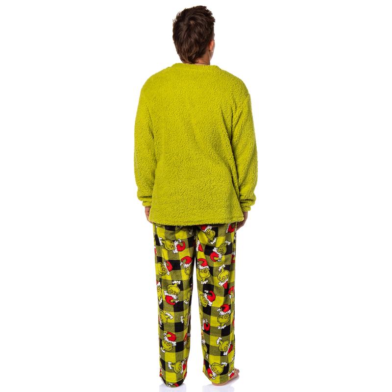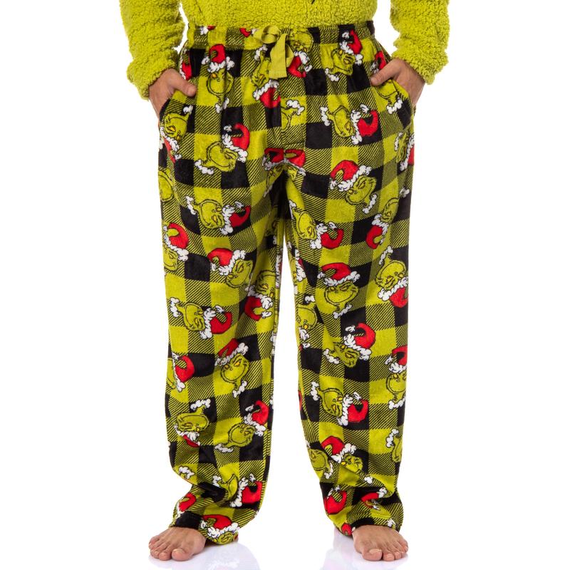 Get ready to steal the show this holiday season with this pajama set. Whether you are a fan of Dr. Seuss' classic character or looking for cozy and festive PJs, this choice is great. This plush fleece set features a green top with an embroidered Grinch face on the front and black and green Santa plaid bottoms. Made with great materials, this sleep set is designed for both comfort and durability. The soft fabric feels gentle against your skin, while the meticulous stitching ensures that your Grinch sleep set will last through many festive seasons. Whether you're lounging around the house, watching holiday movies, or waking up on Christmas morning, our Grinch Sleep Set will keep you in the holiday spirit while keeping you warm and comfortable. It's the great addition to your seasonal wardrobe or a fantastic gift for any Grinch enthusiast. GRINCH PAJAMA SET - Get ready to embrace your inner Grinch with this sleep set! You'll be feeling delightfully mischievous as you slip into this cozy ensemble, great for those who appreciate the finer, or should we say, "Grinch-ier" things in life CLASSIC DESIGN - This plush fleece set features a green top with an embroidered Grinch face on the front and black and green Santa plaid bottoms. You will feel like you've stepped into Whoville. This set is an ideal choice for lounging around during Christmas or any time you want to add a touch of whimsy to your sleepwear QUALITY CONSTRUCTION - This sleep set is made of great materials. The fabric is soft yet durable, ensuring you stay comfortable and warm day or night. Snuggle up with your favorite book, watch the beloved Grinch movie, or prepare your heart to grow three sizes – all while staying comfortably warm in this delightful sleep set SIZE - This sleep set is listed in US Men's sizes but can easily be worn by women looking for a looser fit. great for any fan of the beloved character great PJ SET FOR ANY FAN - Embrace your inner Grinch this holiday season and beyond with this sleep set. It's the great way to make your nights a little more "Grinchy" and a lot more cozy. So add a touch of GRINCH to your sleepwear collection and let your love for this character shine through