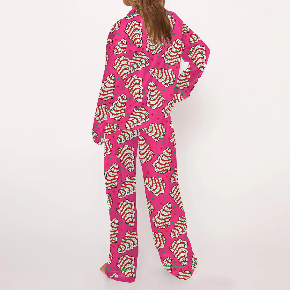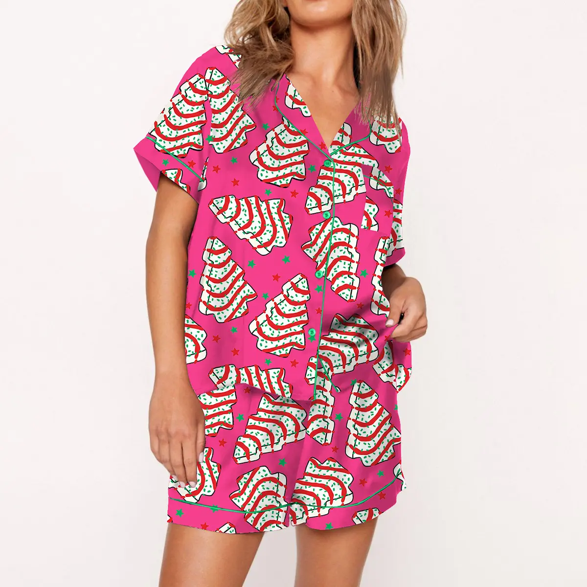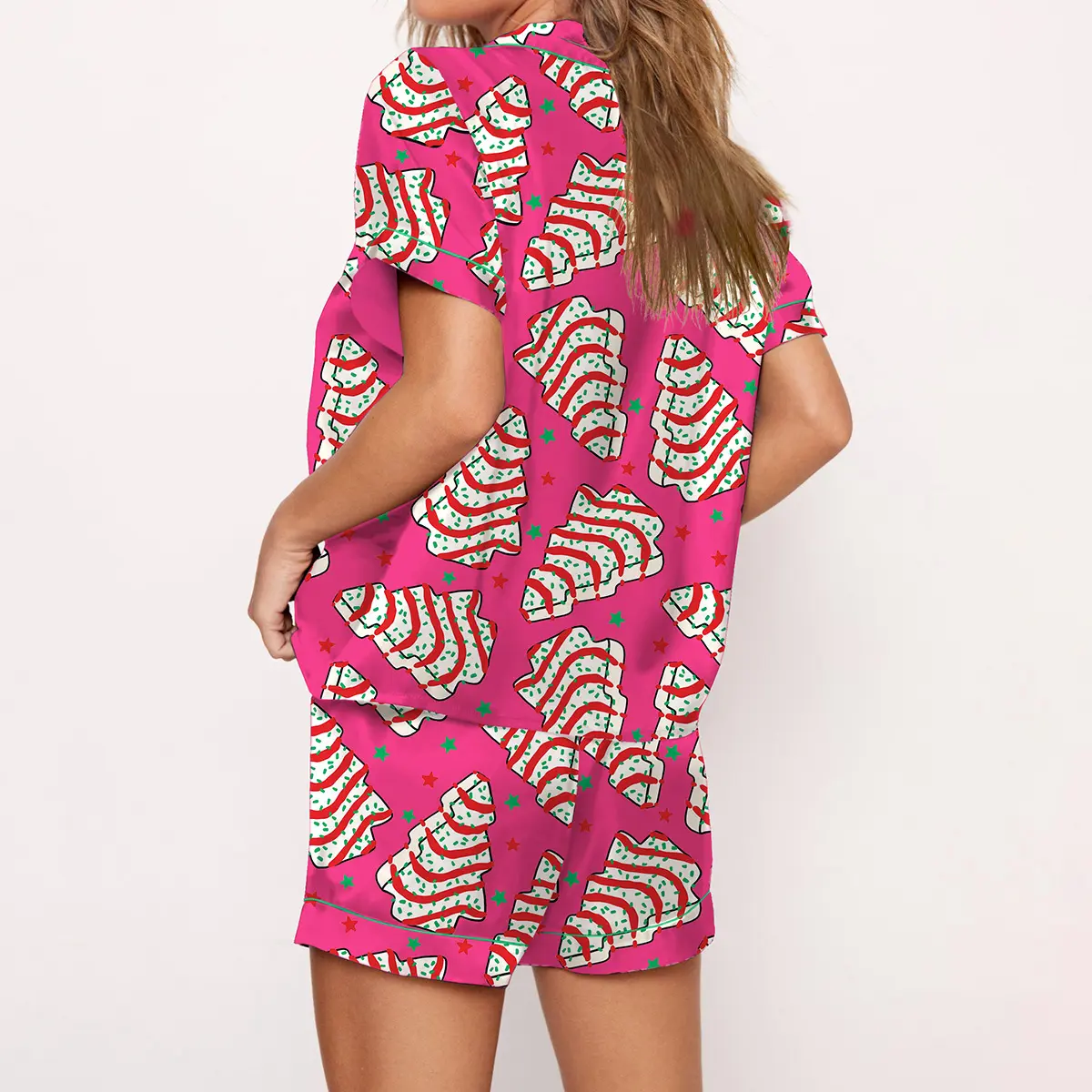 5. Christmas Tree Cakes Pajama Set For Women Print Comfy Satin Sleepwear & Loungewear Pjs Short Sleeve Top & Bottoms Shorts Without Pockets - SHESHOW