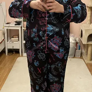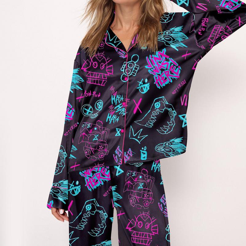 5. Graffiti Arcane Satin Pajama Set For Women Print Comfy Satin Sleepwear & Loungewear Pjs Printing Silky Top & Bottoms - SHESHOW