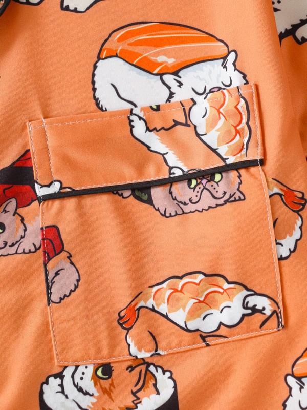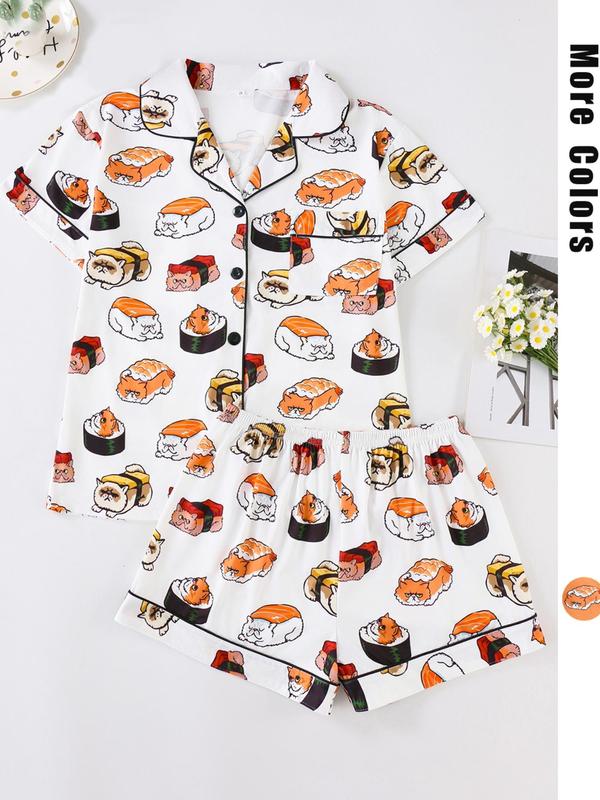 Women's All Over Cartoon Cat Print Shirt & short pajama set#pajama #pajamaset #spotlightfinds #tiktokshop #dealsforyoudays #cat #sushi #cute