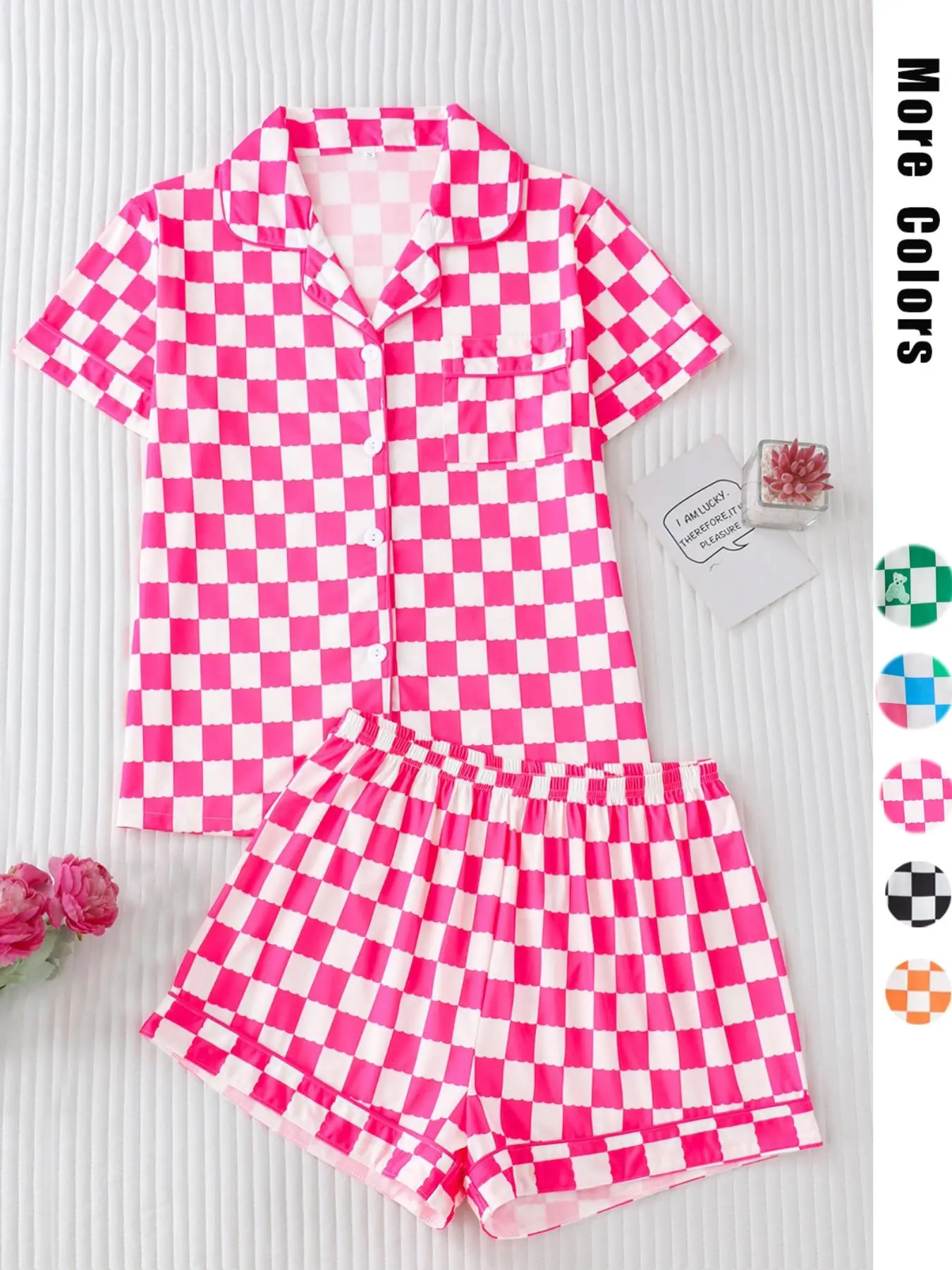 I love anything checkered print so when I saw these pj’s I had to get them. They fit true to size but if you want a more comfortable fit I would size up. I’m 160lbs and got the M and they fit great. The bottoms are more stretchy than the top but overall they fit great on me. The pink is very bright!