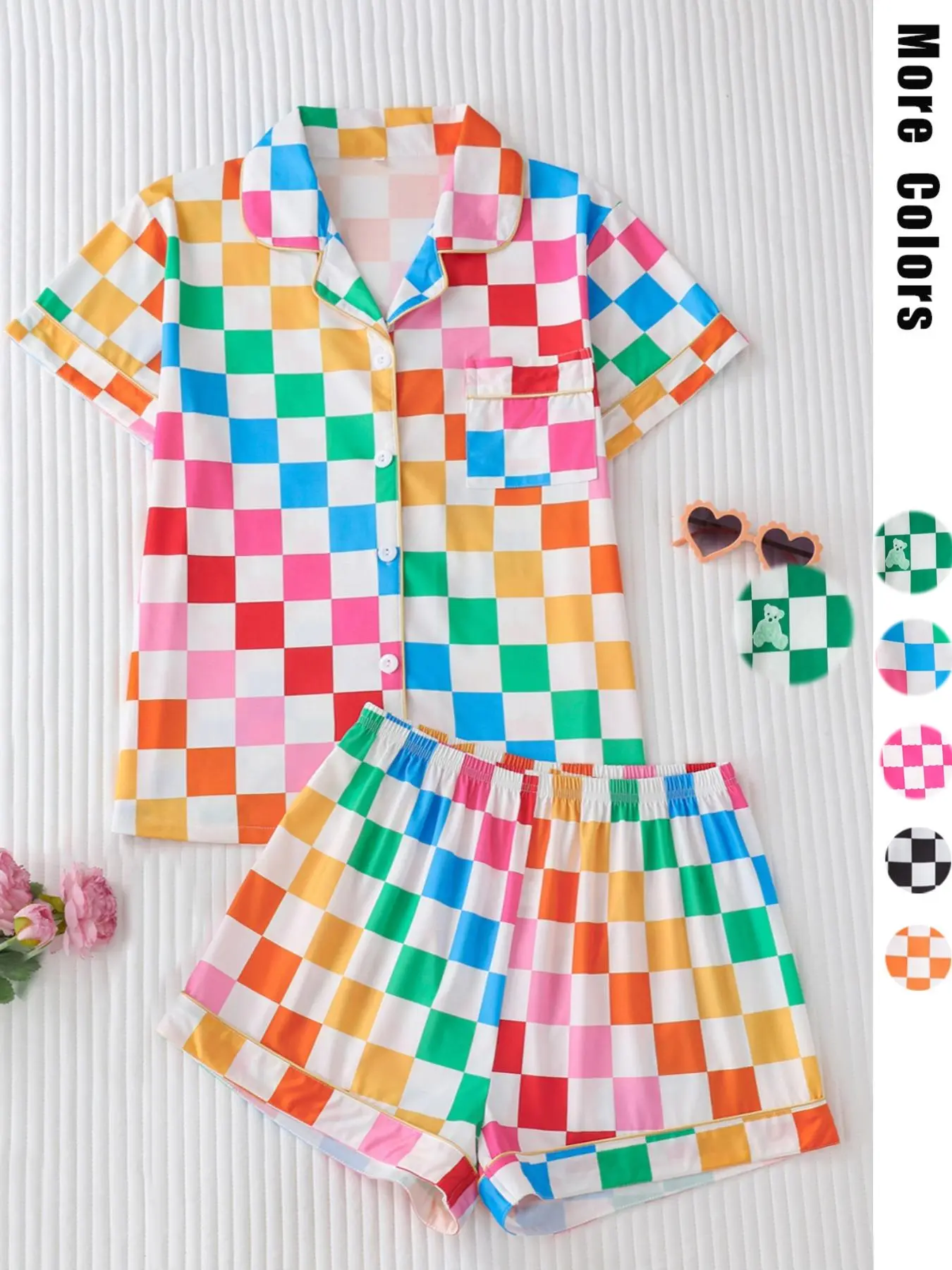 These pajamas are so cute & super soft!! Very comfortable! Compliment tan skin so well. Can pull over your head without unbuttoning. New favorite set! 😍😍