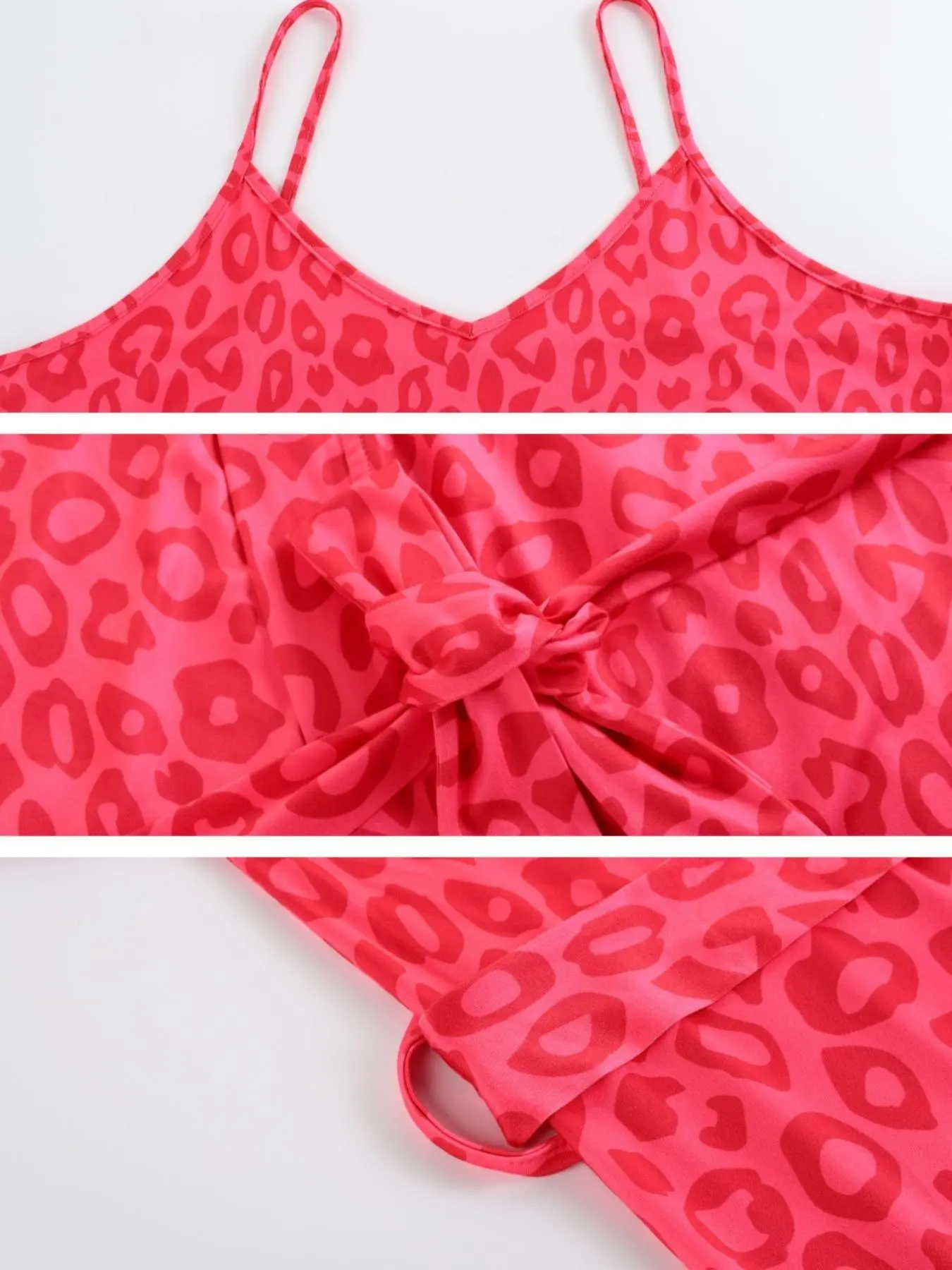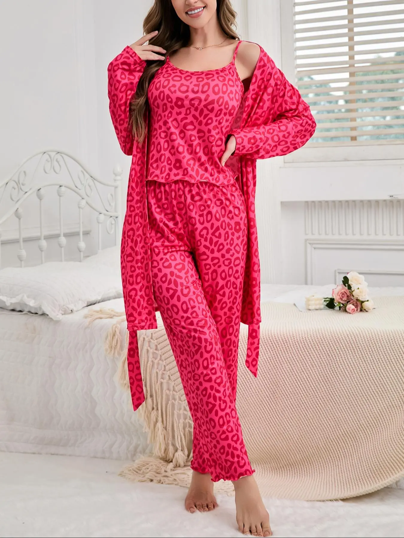 Women's All Over Leopard Print Pajama Three-Piece Set, Casual Comfy Lounge Set for Women, Comfy Loungewear Set for Daily Home Wear
