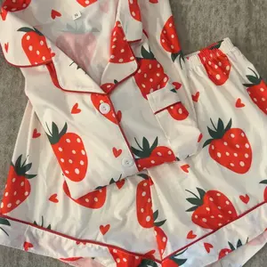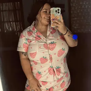 My favorite pjs love the strawberries and hearts and the material is op notch super comfy true to size