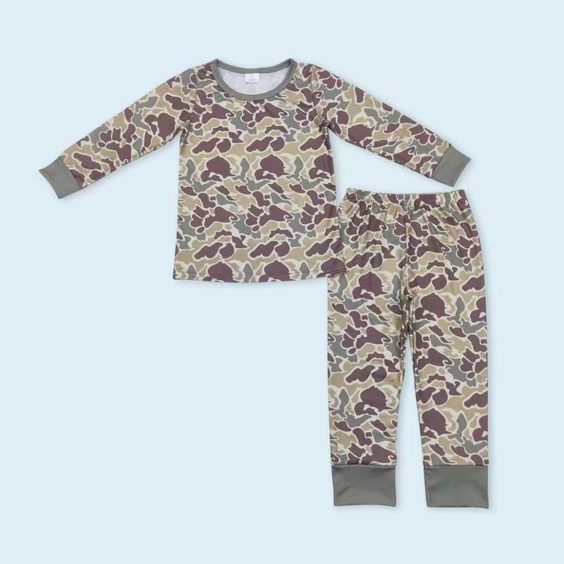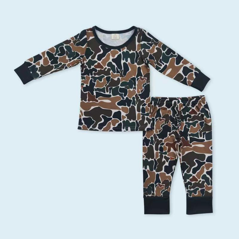 Deer camouflage long sleeves kids boy pajamas are true to size, ideal for casual wear. Available from 3-6m to 7-8yrs, these pajamas come in the same color as shown in the picture. A perfect set for toddler baby girls too. Each package includes one set of pajamas.