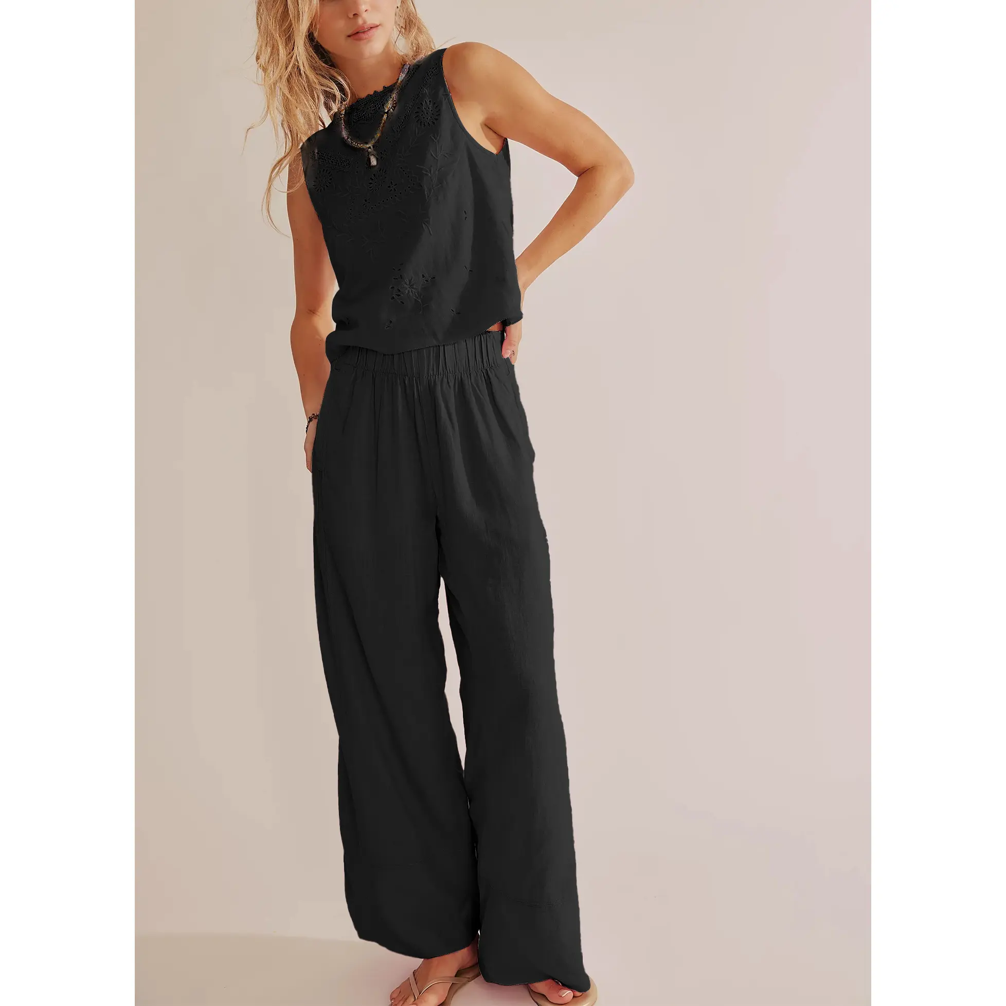 These wide-leg pants feature two deep side pockets and slightly elongated legs for a relaxed, effortless vibe. Easily pair them with cropped tops, tank tops, T-shirts, and sandals for a casual summer look. This wide-leg style is an essential piece for your summer wardrobe.