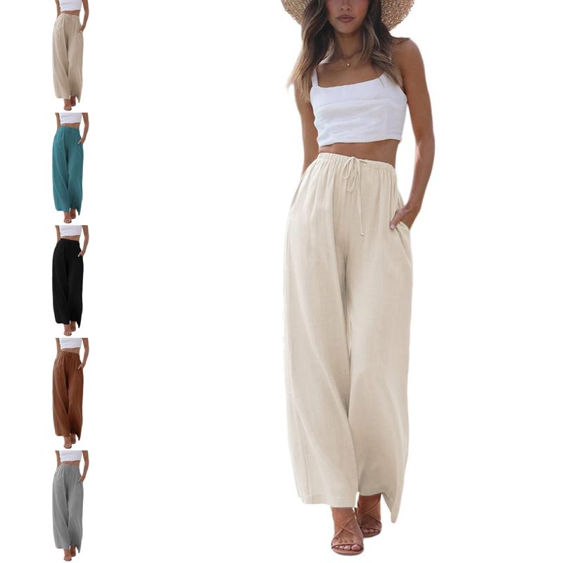 Wide leg, solid color, and elastic waist with drawstrings for women's summer palazzo pants