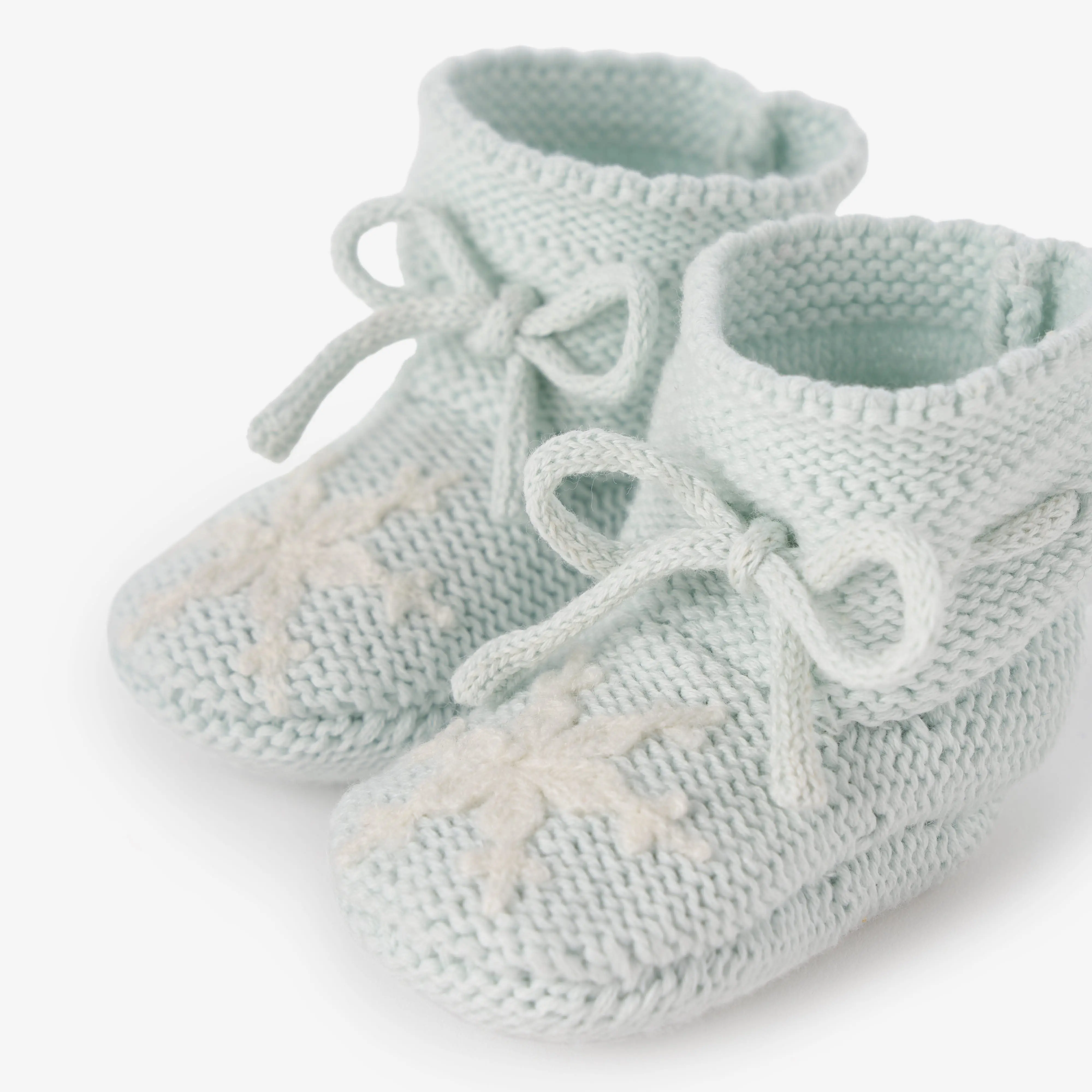 5. Pale Blue Snowflake Garter Knit Baby Booties