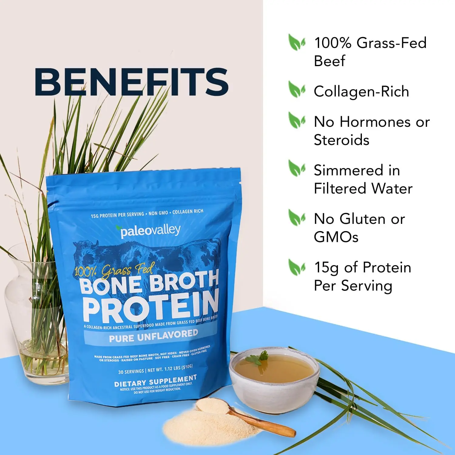 ·100% Grass Fed: Made with 100% grass-fed and finished beef bones.