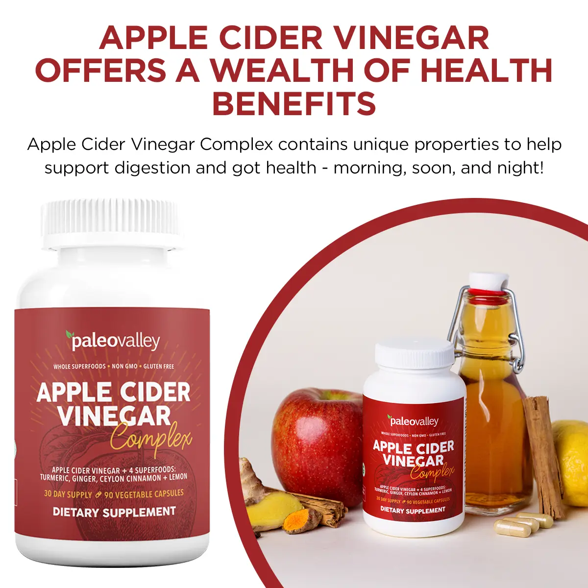 Paleovalley Apple Cider Vinegar Complex makes getting organic apple cider vinegar into your body faster, easier, and without having to tolerate the taste.