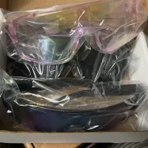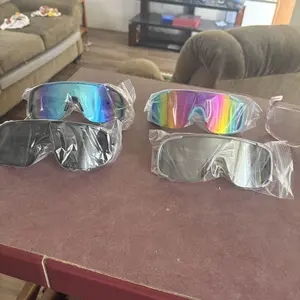 These sunglasses look stylish and modern. They have different lens colors and give good protection from the sun. They’re light, comfortable, and perfect for outdoor activities.