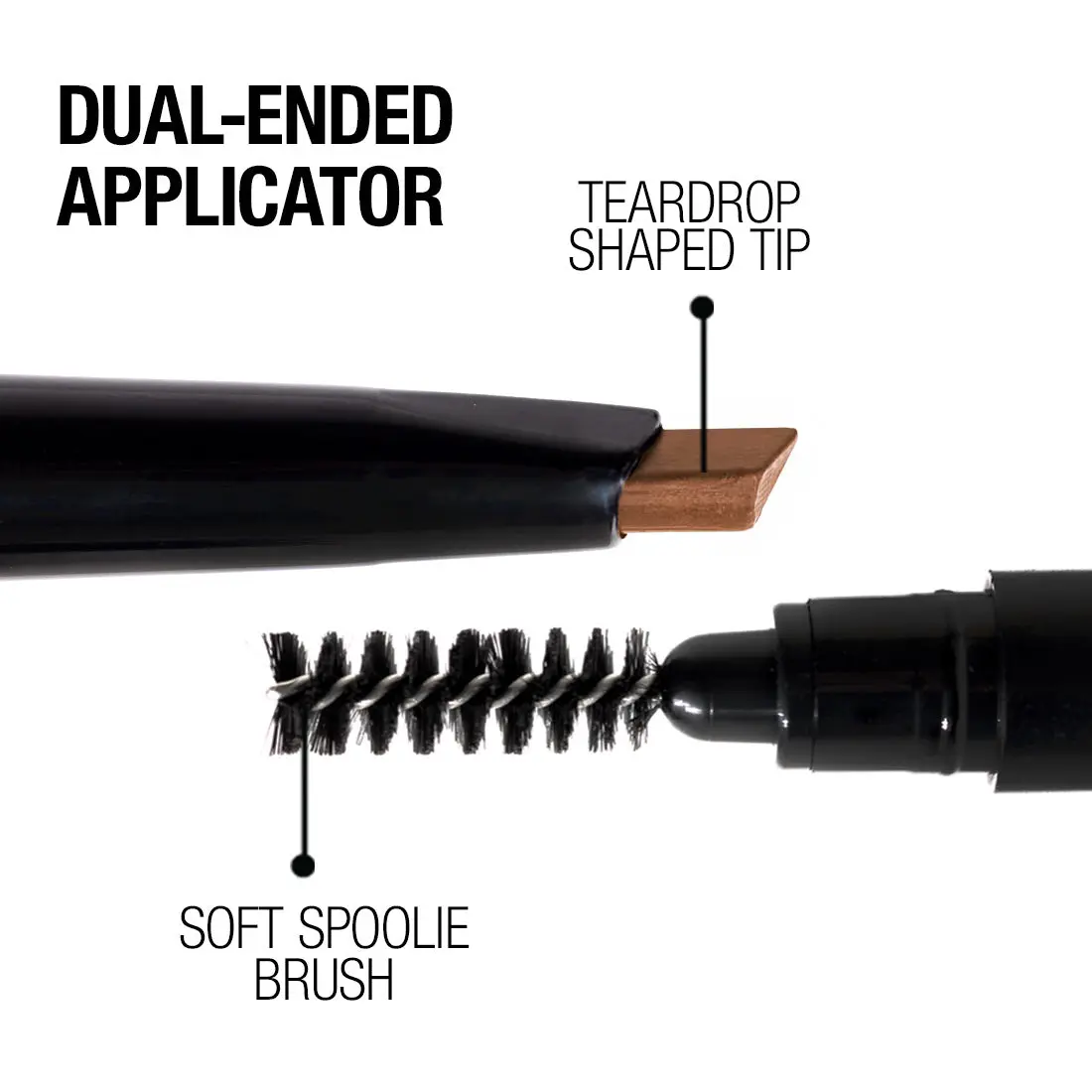 Pro Tip: Use the retractable pencil’s unique triangle-shaped tip to outline your brow shape, following your natural arch. Lightly outline your brows to create the desired shape, then fill in with short, feathery strokes. Use the built-in spoolie to blend and soften the pencil for a seamless, natural finish.
