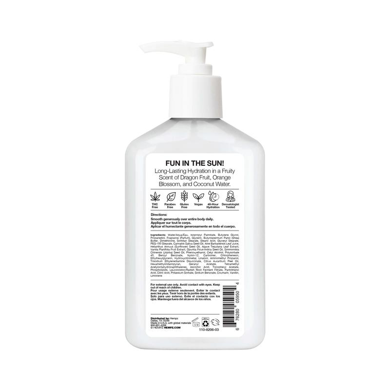 | Ingredients | Water/Aqua/Eau, Isopropyl Palmitate, Butylene Glycol, Propanediol, Fragrance (Parfum), Glycerin, Butyrospermum Parkii (Shea) Butter, Dimethicone, Sorbitan Stearate, Stearic Acid, Glyceryl Stearate, PEG-100 Stearate, Cannabis Sativa Seed Oil, Aloe Barbadensis Leaf Juice, Helianthus Annuus (Sunflower) Seed Oil, Agave Tequilana Leaf Extract, Vanilla Planifolia Fruit Extract, Opuntia Ficus-Indica Seed Oil, Simmondsia Chinensis (Jojoba) Seed Oil, Phenoxyethanol, Cetyl Alcohol, Polysorbate 40, Benzyl Benzoate, Nylon-12, Carbomer, Chlorphenesin, Ethylhexylglycerin, Hydroxycitronellal, Linalool, Aminomethyl Propanol, Trisodium Ethylenediamine Disuccinate, Citrus Aurantium Peel Oil, Hexamethylindanopyran, Geranyl Acetate, Tetramethyl Acetyloctahydronaphthalenes, Ascorbic Acid, Tocopheryl Acetate, Phospholipids, Leuconostoc/Radish Root Ferment Filtrate, Pantothenic Acid, Citric Acid, Potassium Sorbate, Sodium Benzoate, Coumarin, Vanillin, Limonene |