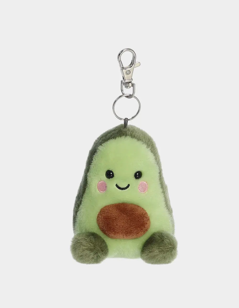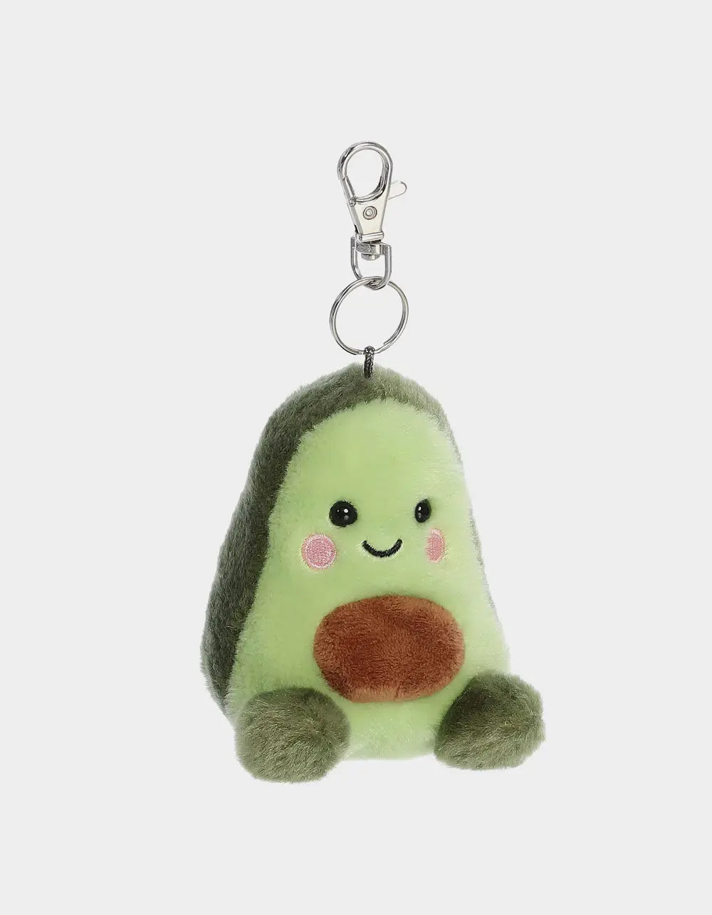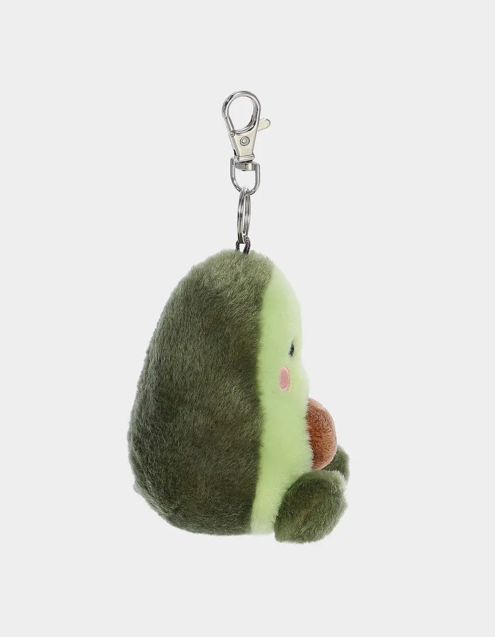 Palm Pals 4in Avocado Bag Charm. Airy Avocado is not just a tasty treat but also a delightful companion as a Palm Pals Clip-On. Featuring a soft green color and a cute stone core, this plush is perfect for avocado aficionados and those who appreciate a healthy splash of green. Its smiling face and soft exterior make it a comforting and quirky addition to any collection. Approximate dimensions: 3in x 3in x 4in. Recommended for ages 1+. Free from pellets. Clips on to your purse, wallet, backpack and many other accessories. Imported.