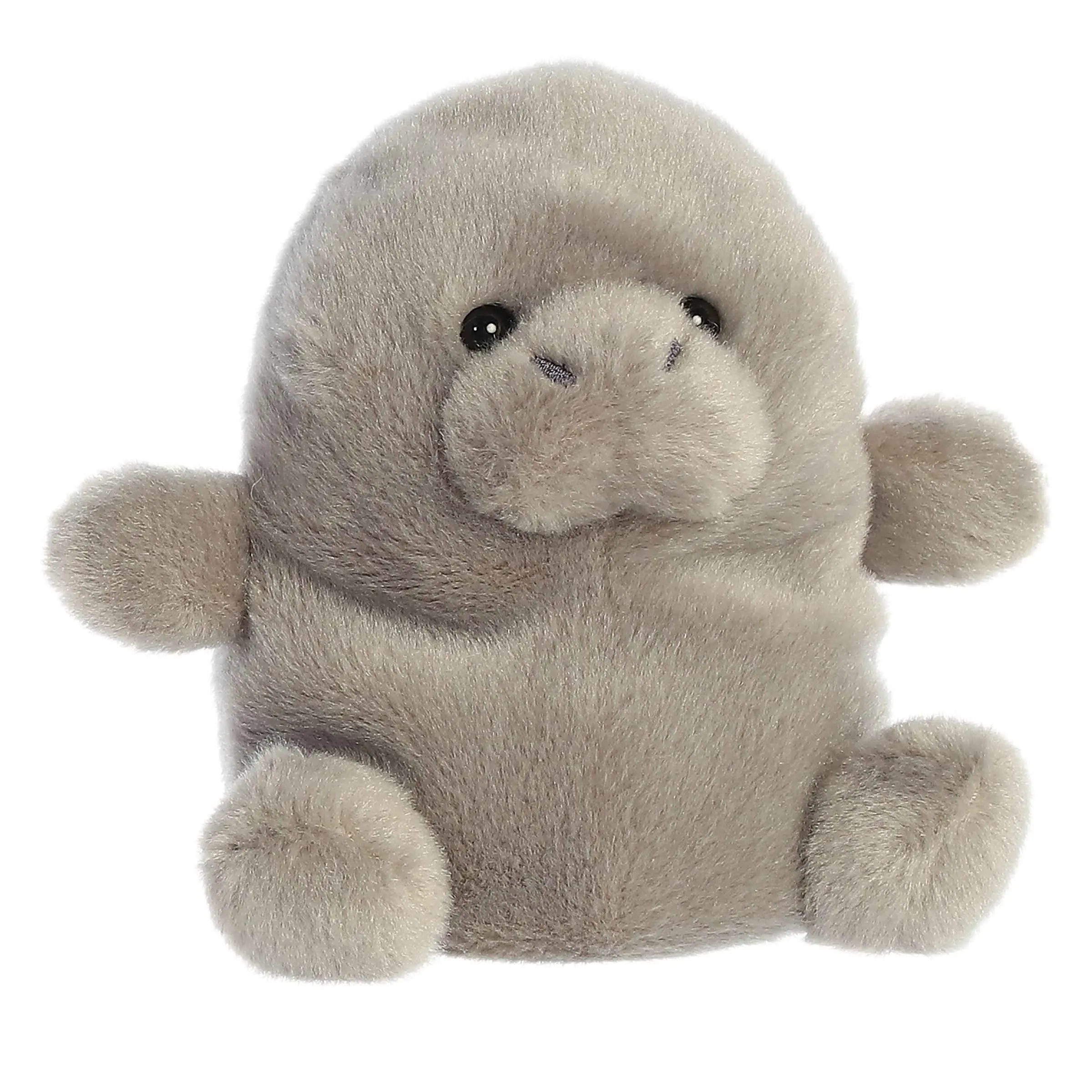 Embrace simplicity with Palm Pals Blubs Manatee, whose plush, slate-grey body and gentle, smiling visage embody the essence of contentment. His understated blue eyes and tender expression radiate a sense of calm and satisfaction with life's basic joys. Compact and cuddly, Blubs is a beacon of tranquility, inviting you to delight in the comfort of quiet moments and the pleasure of uncomplicated companionship.