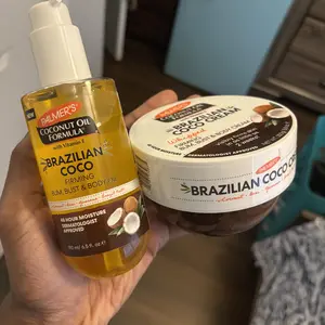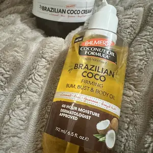 One of my fav body creams. Some people think the oil is a possible dup. Itās not. Itās a warm coconut scent just like the cream.