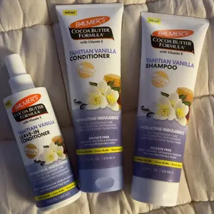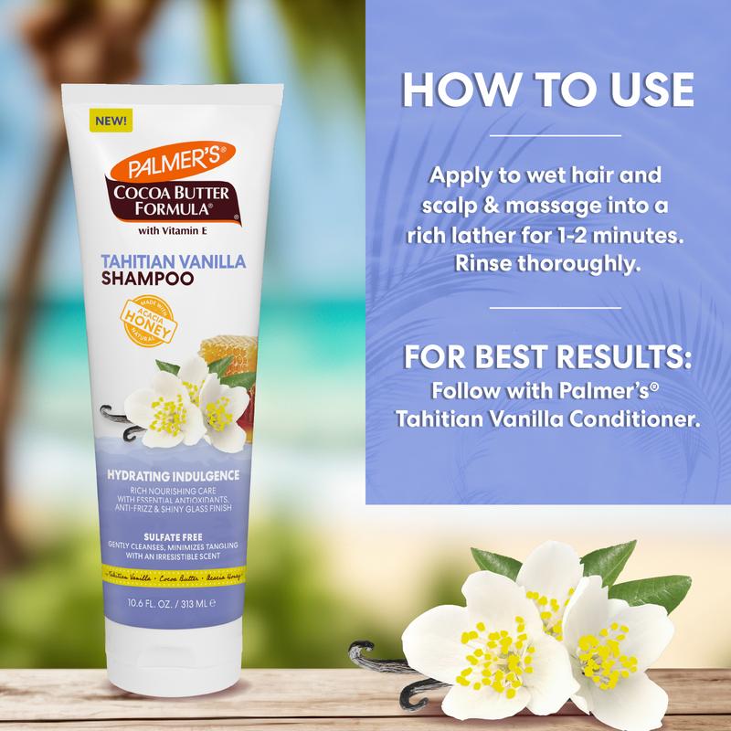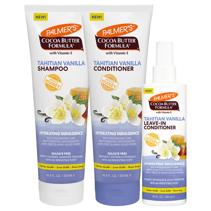 Hydration you can see. Smoothness you can feel. Palmer’s Cocoa Butter Formula Tahitian Vanilla Hair Care delivers rich, indulgent moisture, helps fight frizz, and leaves hair with a glass-like shine—all wrapped in an irresistible vanilla + honey scent.