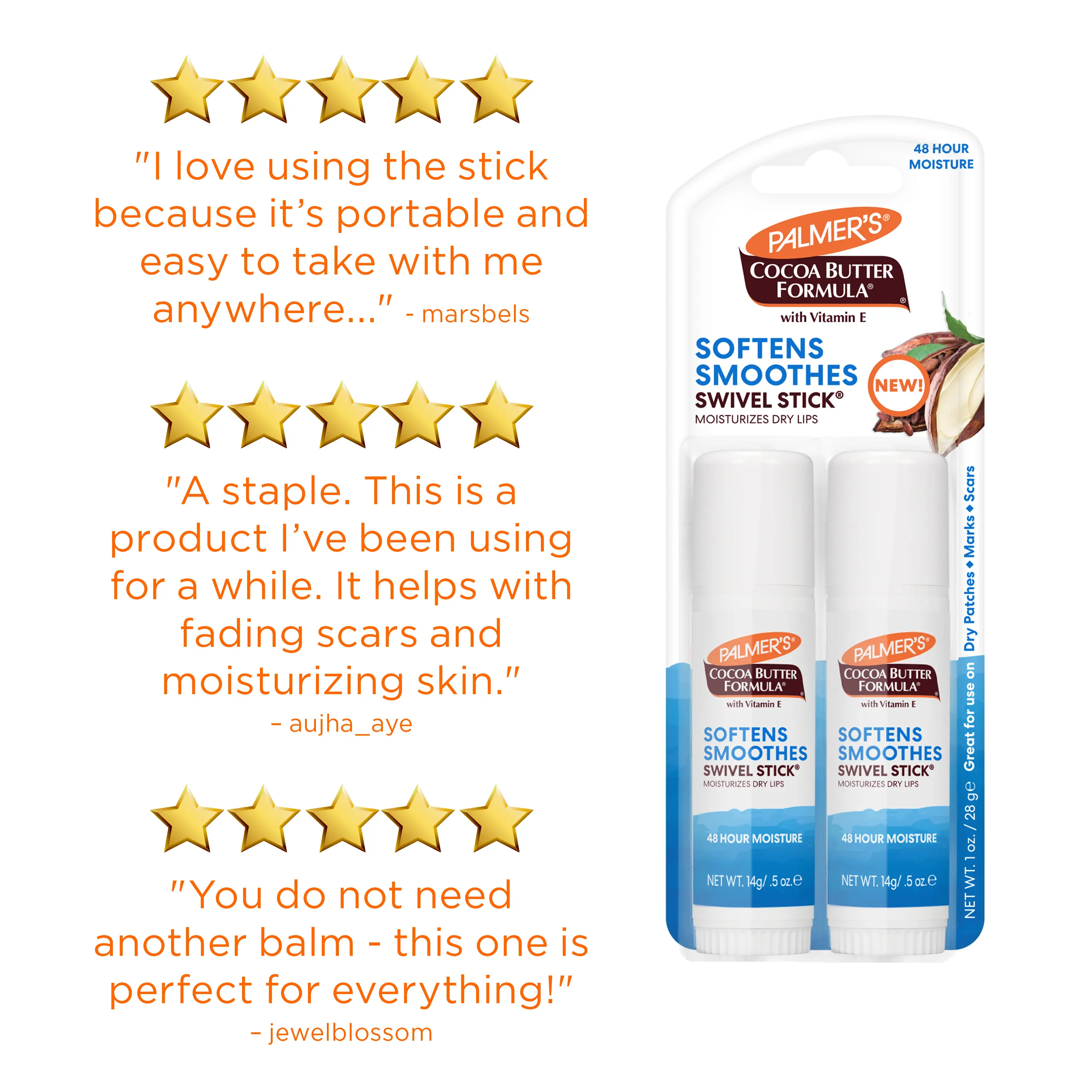 I love all palmers products and product is a pretty big size and will last you a while. I love no heavy perfume and it goes on smooth. Smooth tube of lip balm.