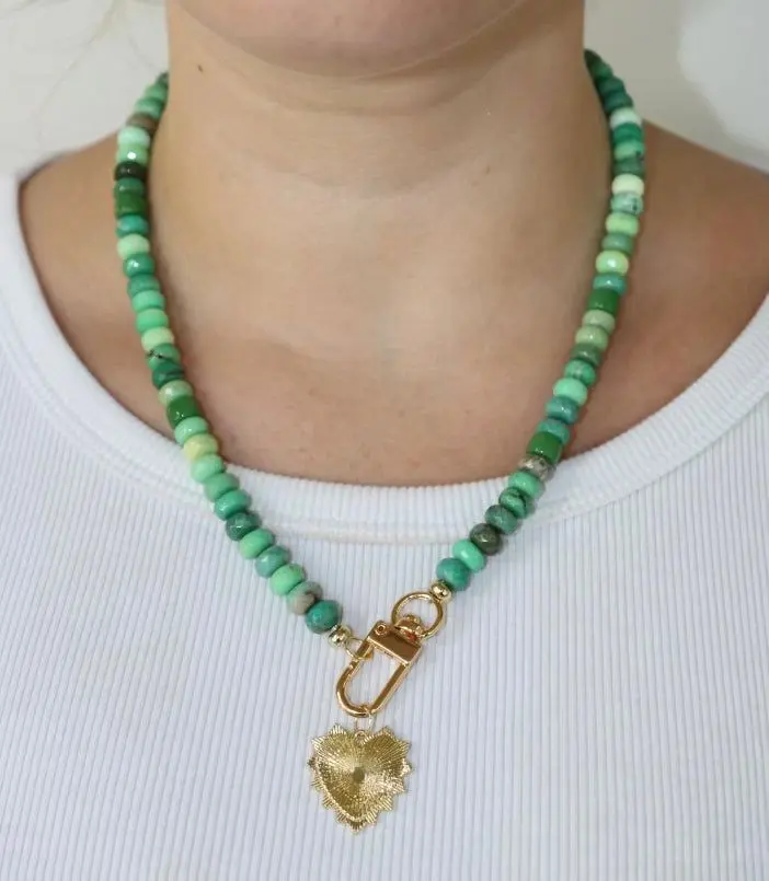 Meet Paloma, My Green Opal Bead Necklace! #paloma #necklace #necklacestack #boho #green #classic #preppyaesthetic #preppy #boho #bohojewelry #jewelry #beadedjewelry #naturalstone