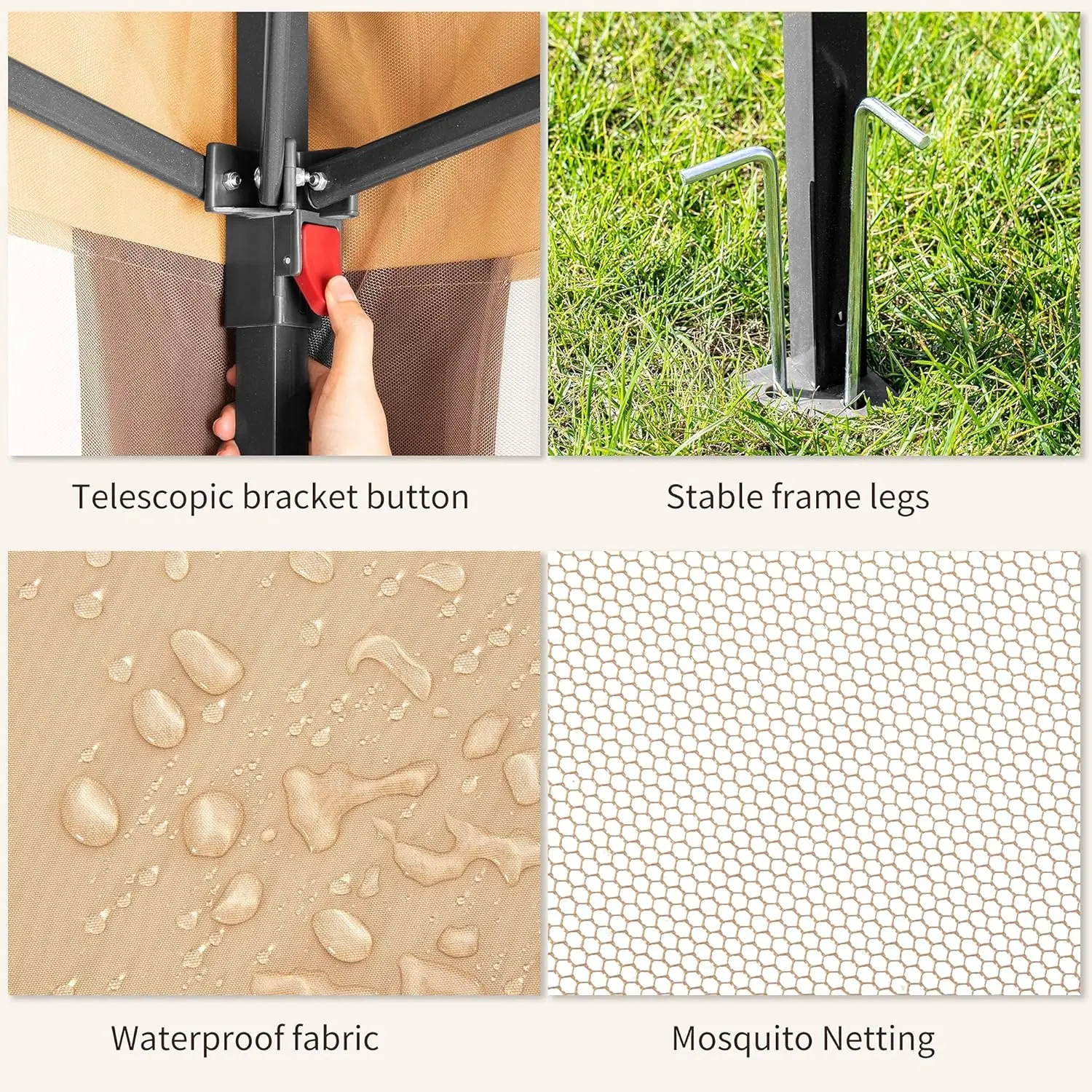 ·【Meticulous Design】The double-layer gazebo canopy roof design can maintain air circulation. There are four drainage holes on the roof to avoid water accumulation. The eaves of our 4 tents can be extended to increase the coverage area. Placing a dining table, sofa or recliner inside so that you can entertain outdoors at any time.