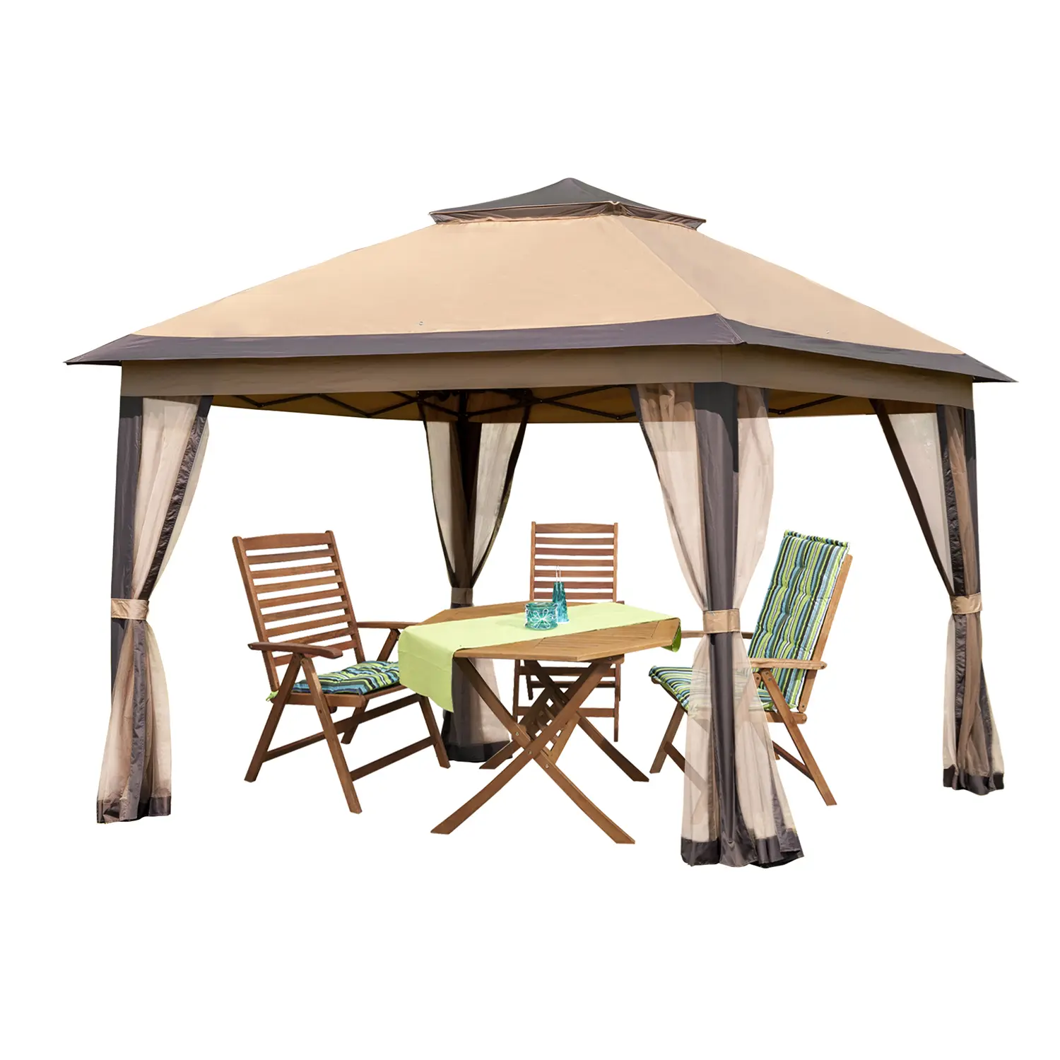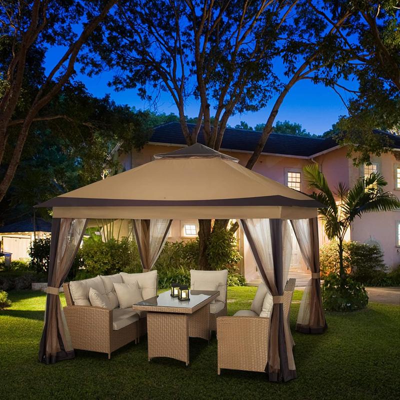 ·【Easy to Storage and Carry】Our gazebo features are provided with 300D PVC-coated Oxford bag to make transportation easier. You can take the canopy to anywhere. The size of the unfolded gazebo is 11’x11’ and is perfect for lawns, gardens, backyards, swimming pools, and is very suitable for outdoor activities such as picnics, parties.If you have any questions during installation or use, please feel free to contact us, we will provide you with quality service at any time.