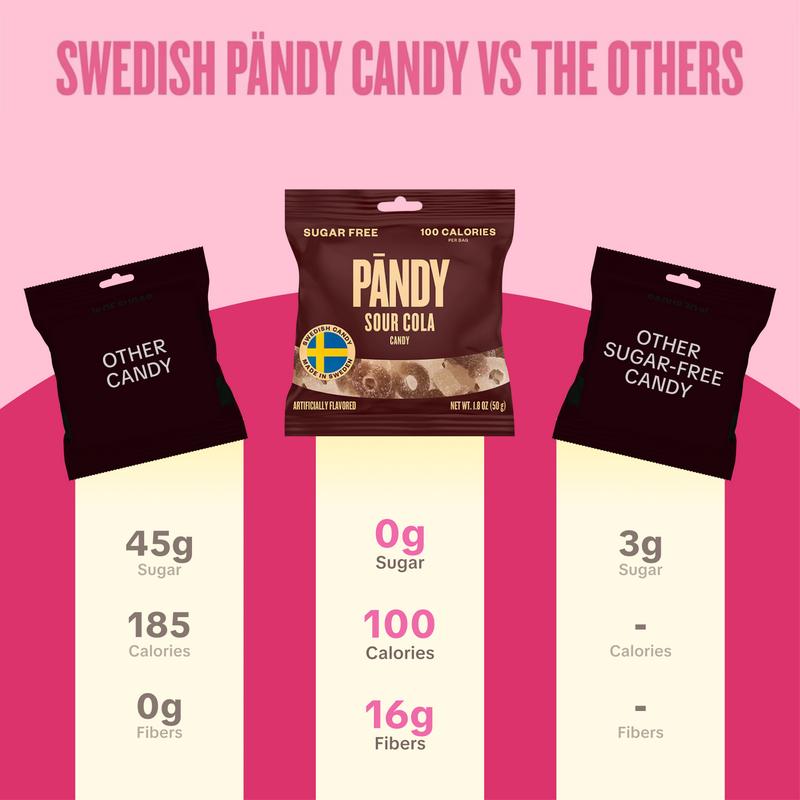 Pandy Candy Sugar Free Swedish Candy, Gummy, Sour Candy, 100 Calories per Bag, Healthy Snacks for Kids & Adults